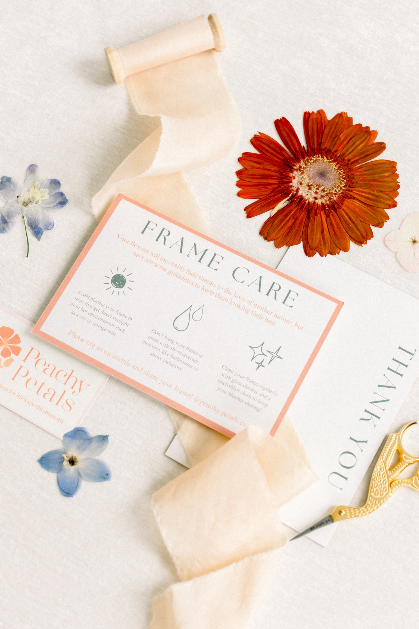 We frame your flowers with UV-protectant glass in our custom frames, package them securely, and ship them to your home, ready to shine! You can also come pick your frame up from our studio, if you are local!