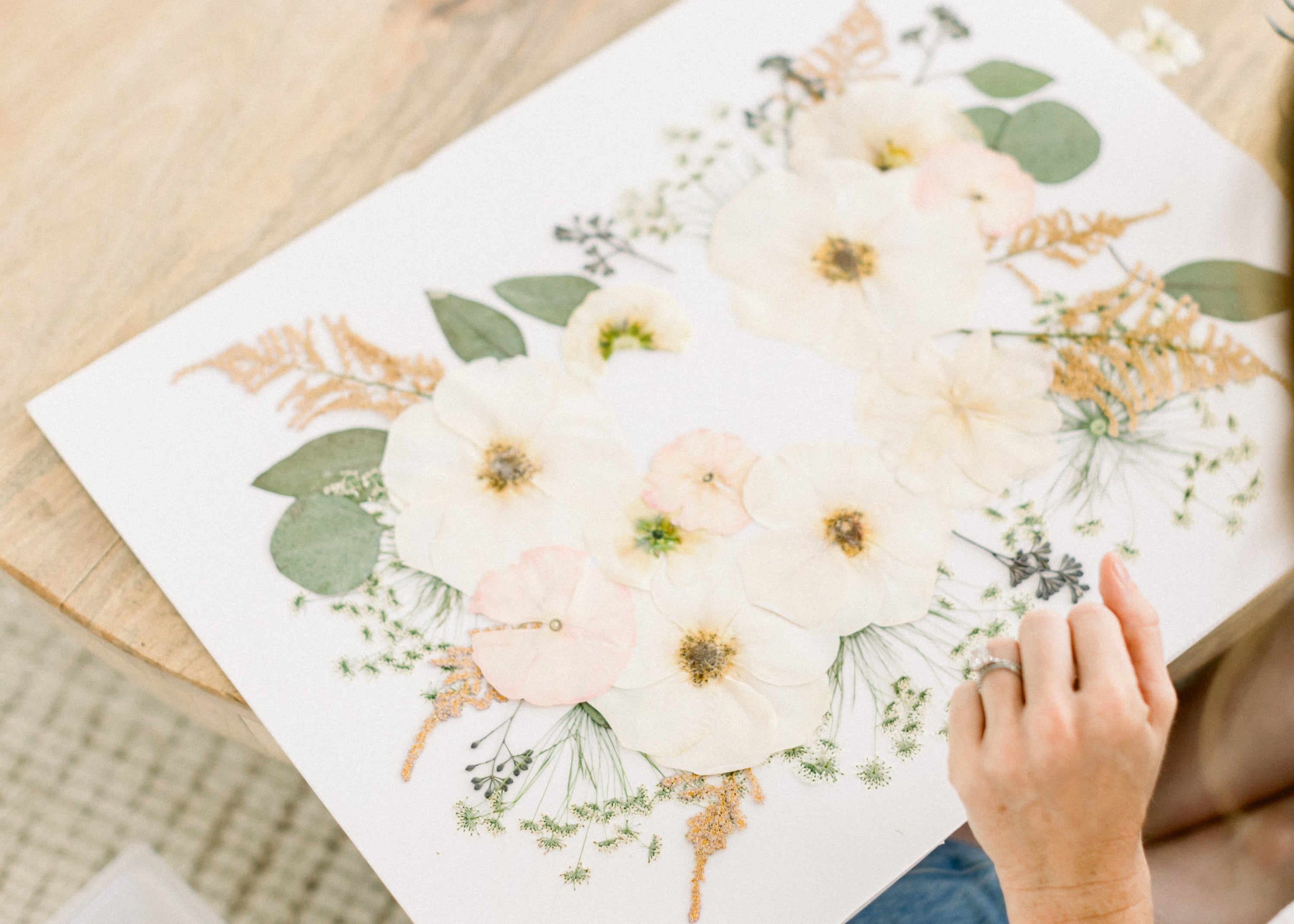 Once your flowers arrive, we press, design, and craft a unique layout just for you. You will get emails as your bouquet moves through the different phases of our work process. You’ll receive a mock-up design to approve before we finalize your piece.