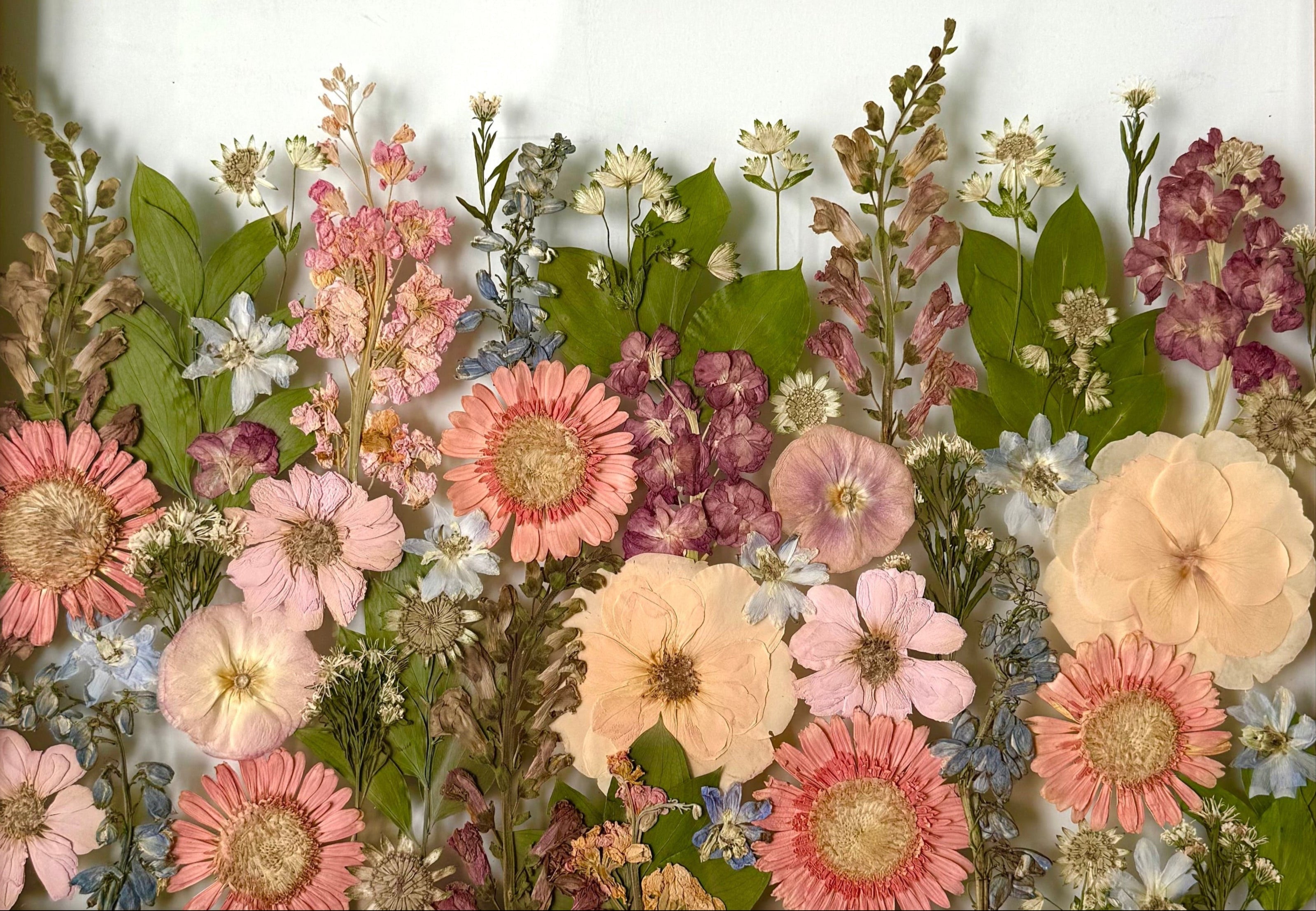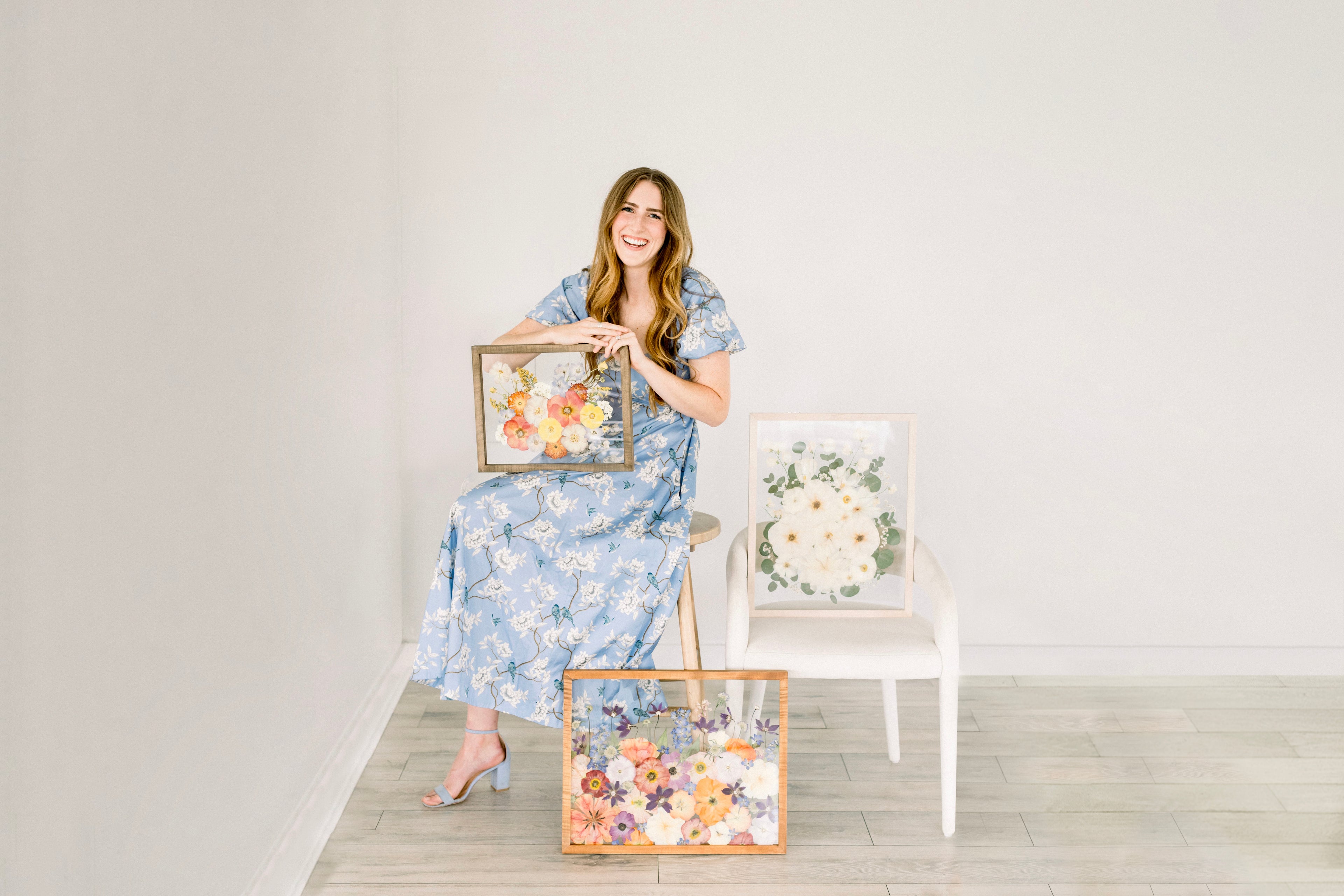 Once your flowers arrive, we press, design, and craft a unique layout just for you. You will get emails as your bouquet moves through the different phases of our work process. You’ll receive a mock-up design to approve before we finalize your piece.