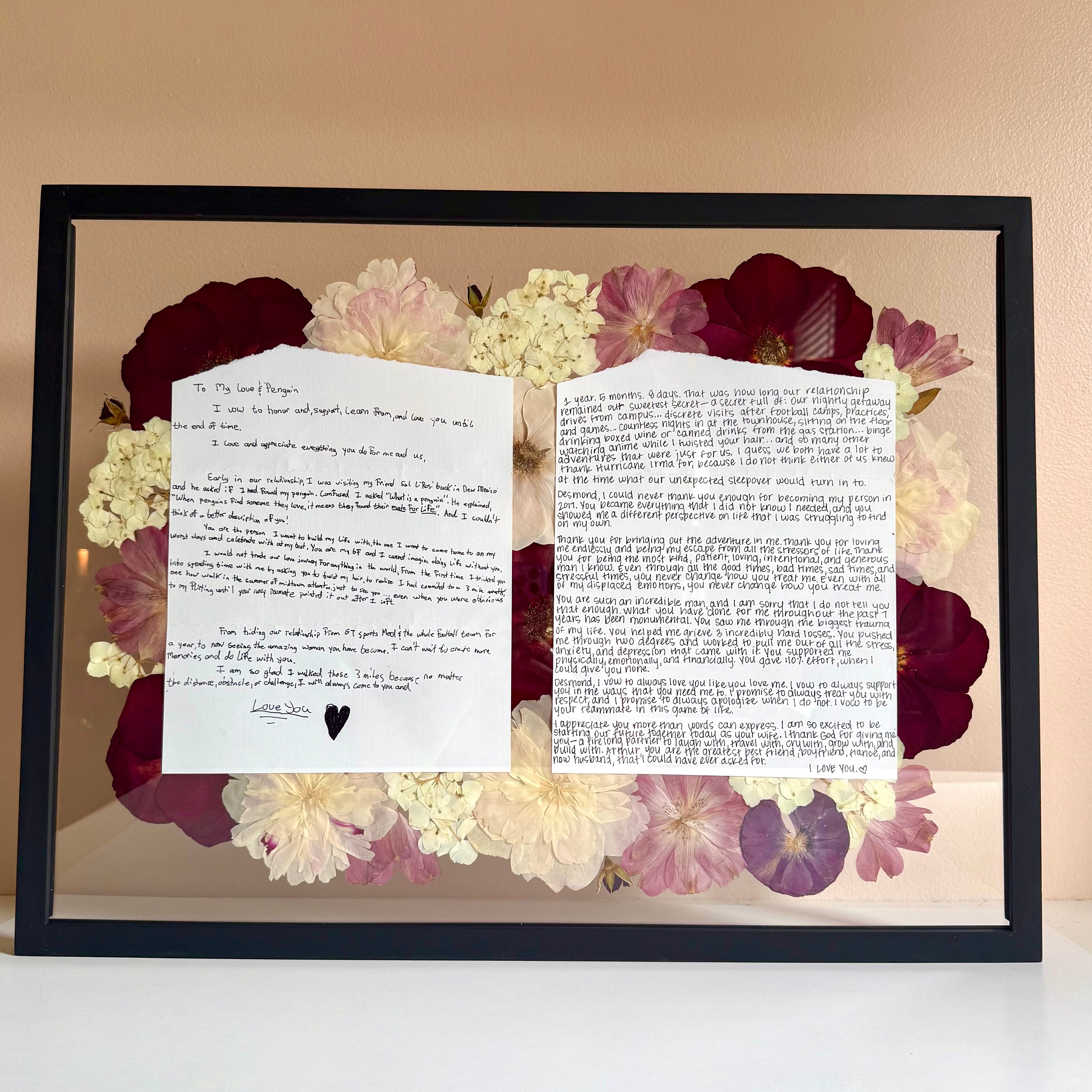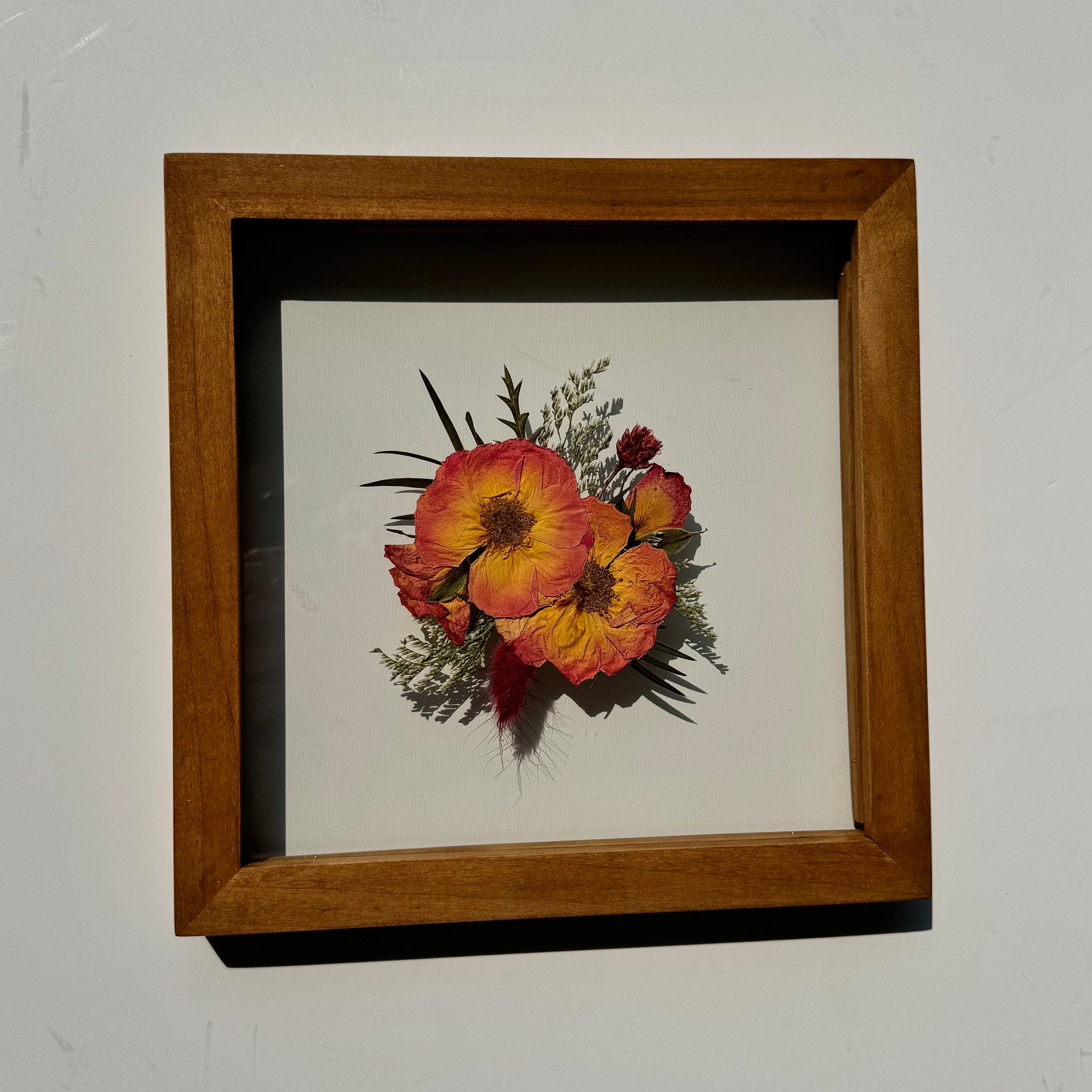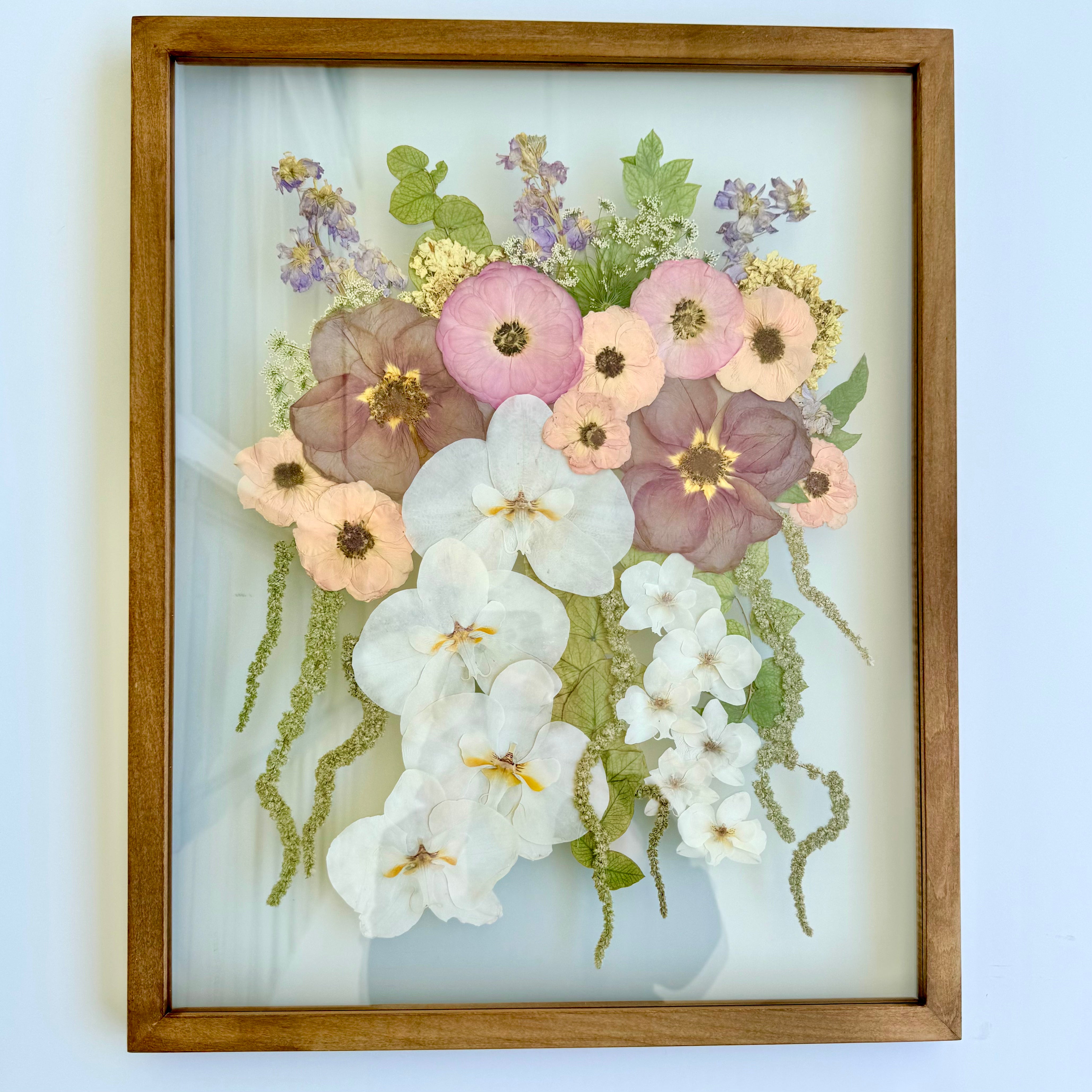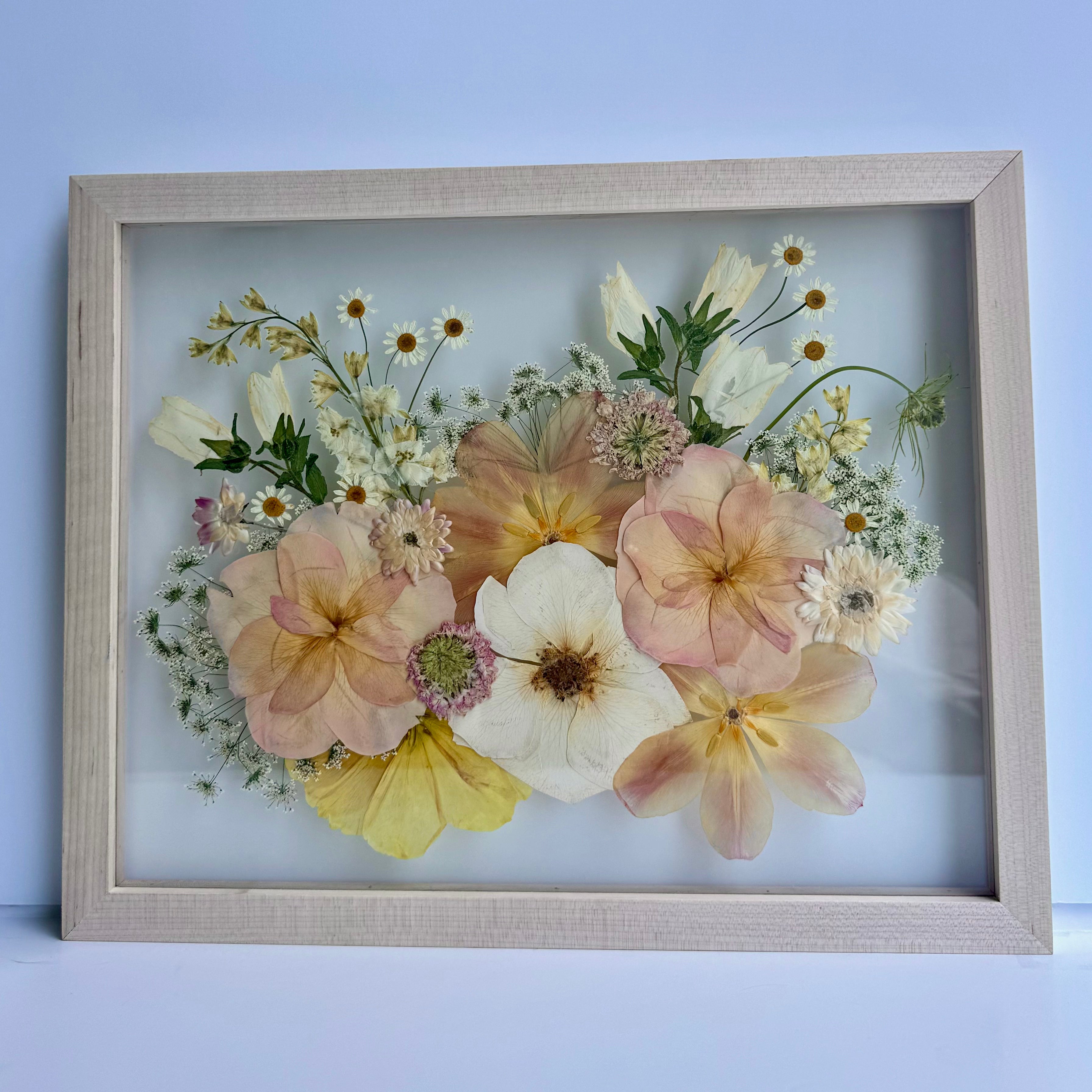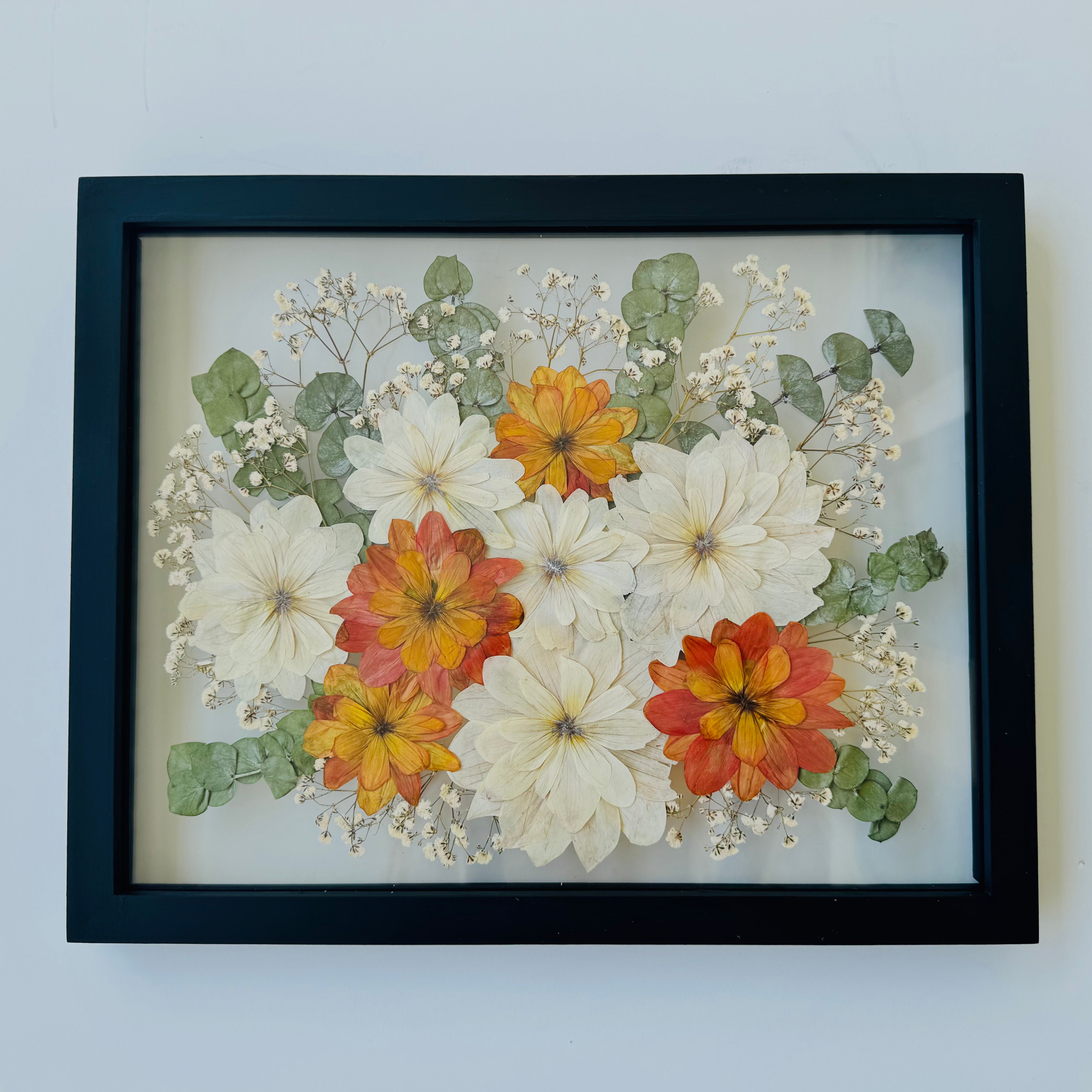 Welcome to our gallery! Here, you’ll find a collection of frames we have created for our clients, each handcrafted with love and care. From vibrant bouquets to monochromatic designs, Peachy Petals does it all. Every bouquet tells a different story, and we strive to make each frame as unique as the memory it holds.