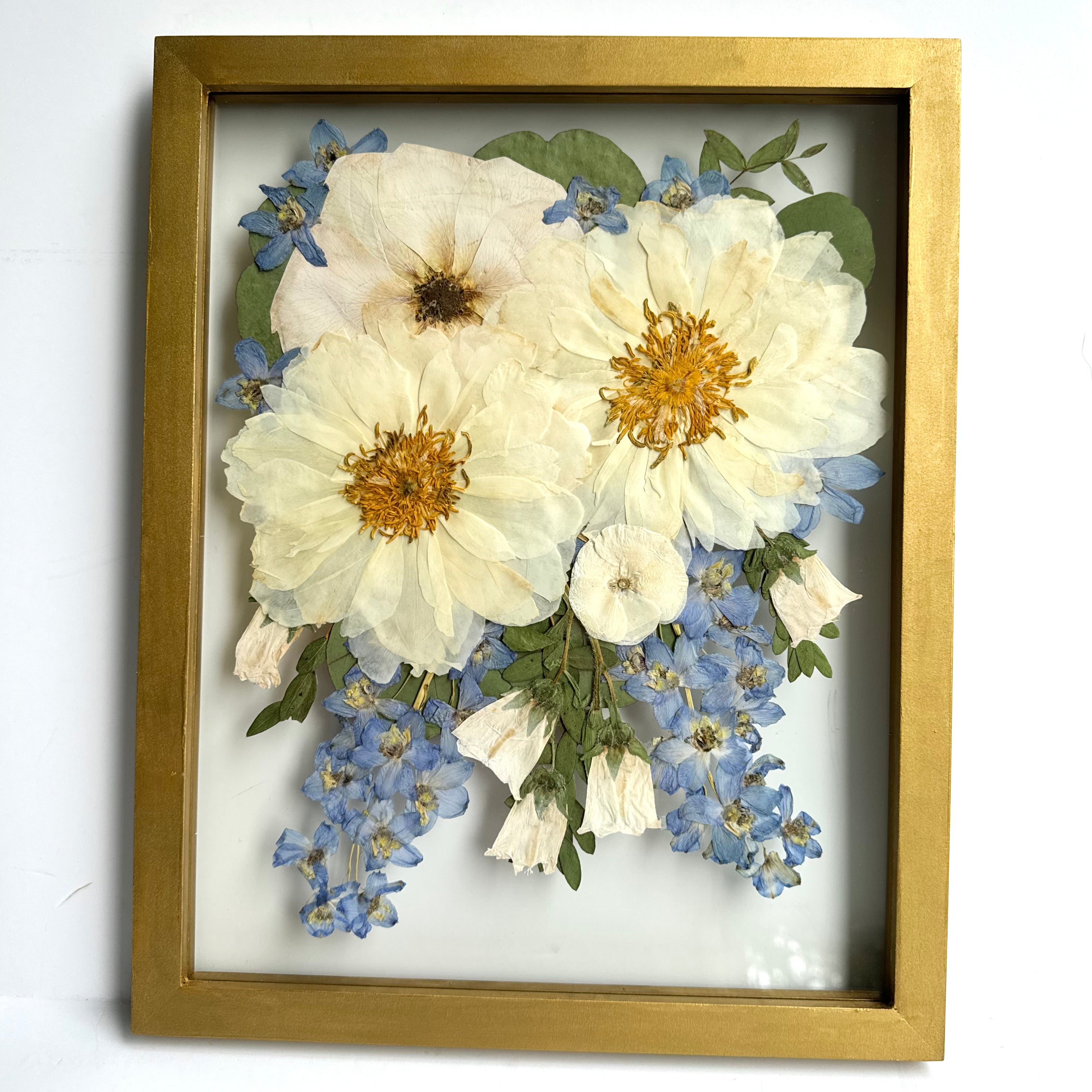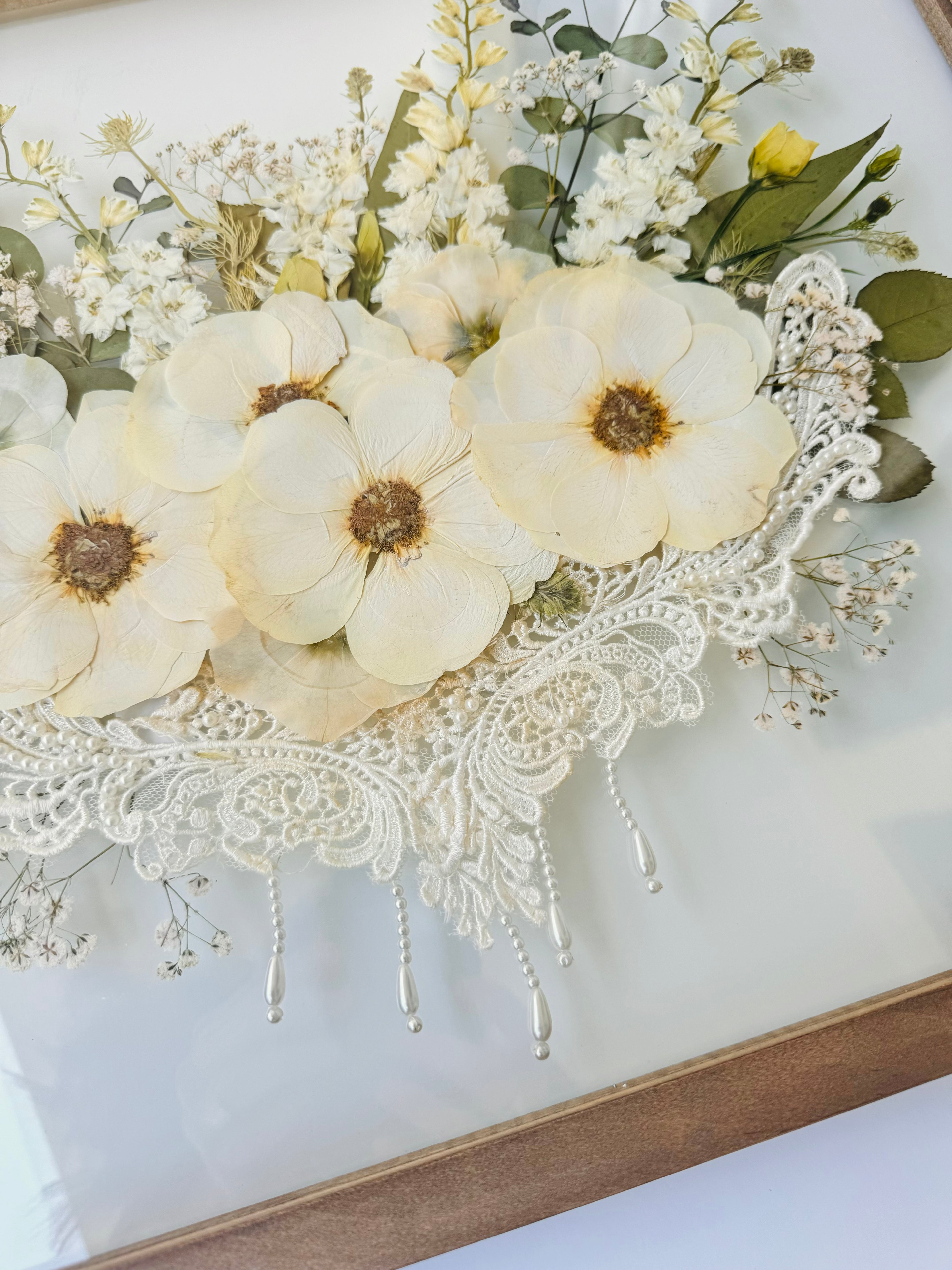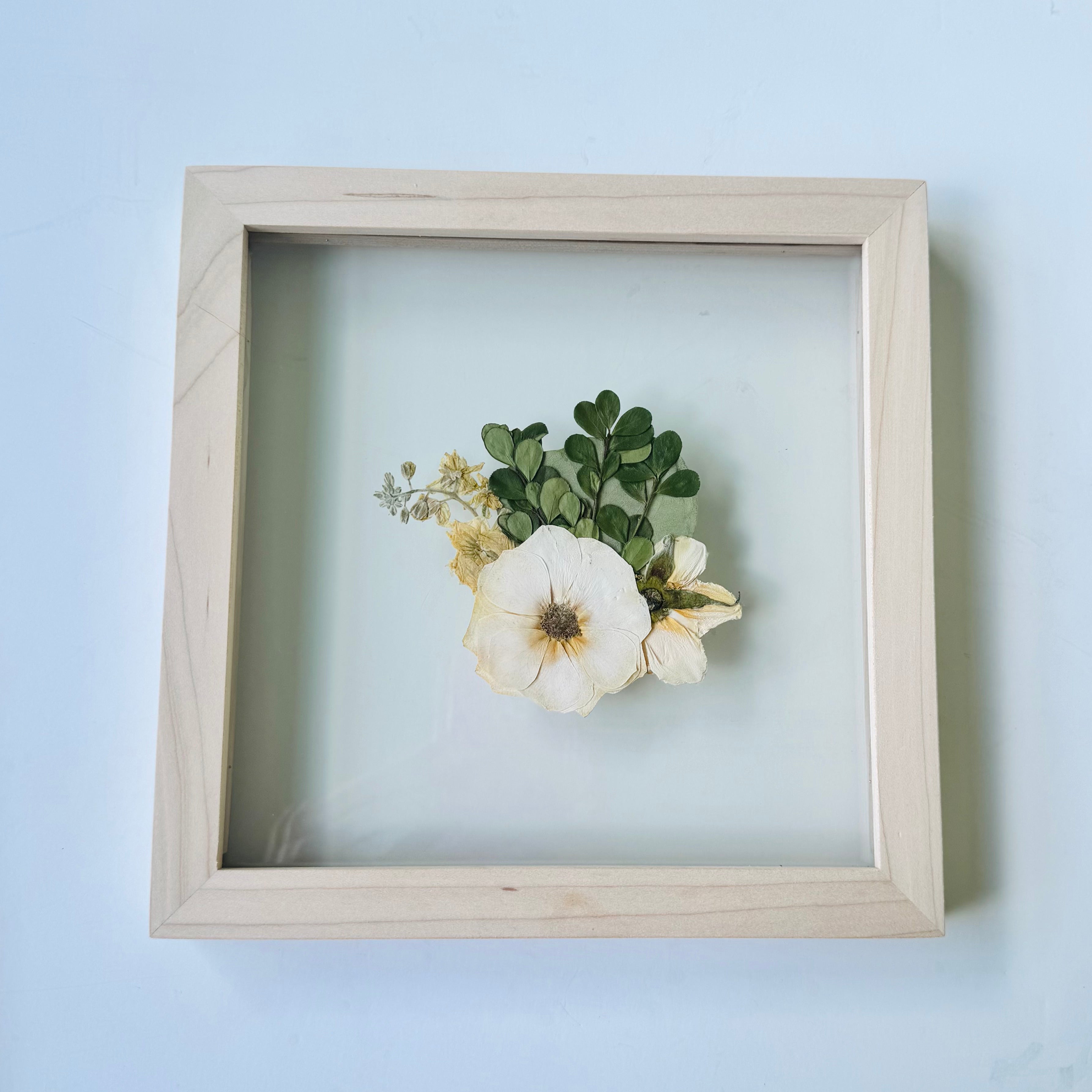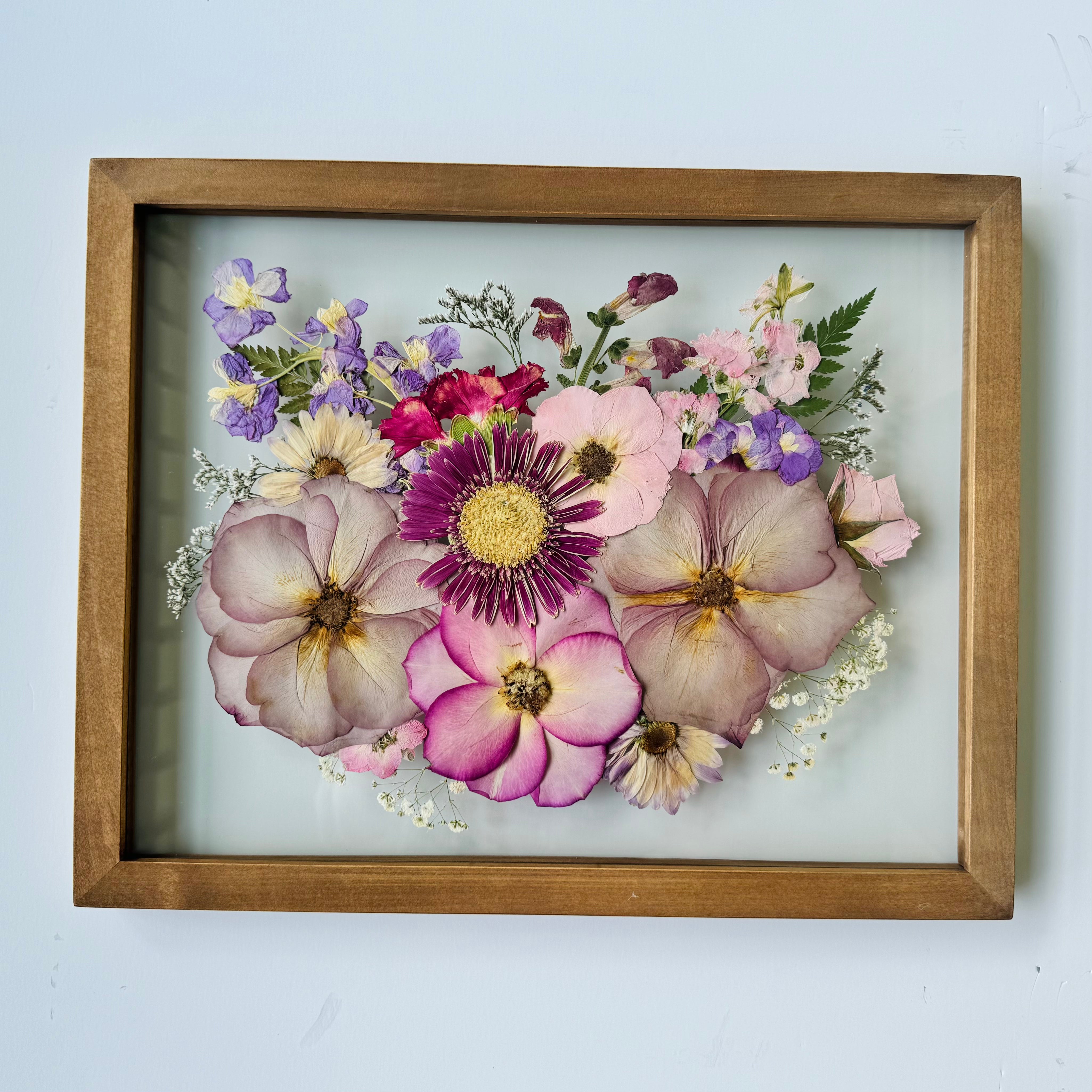 Welcome to our gallery! Here, you’ll find a collection of frames we have created for our clients, each handcrafted with love and care. From vibrant bouquets to monochromatic designs, Peachy Petals does it all. Every bouquet tells a different story, and we strive to make each frame as unique as the memory it holds.