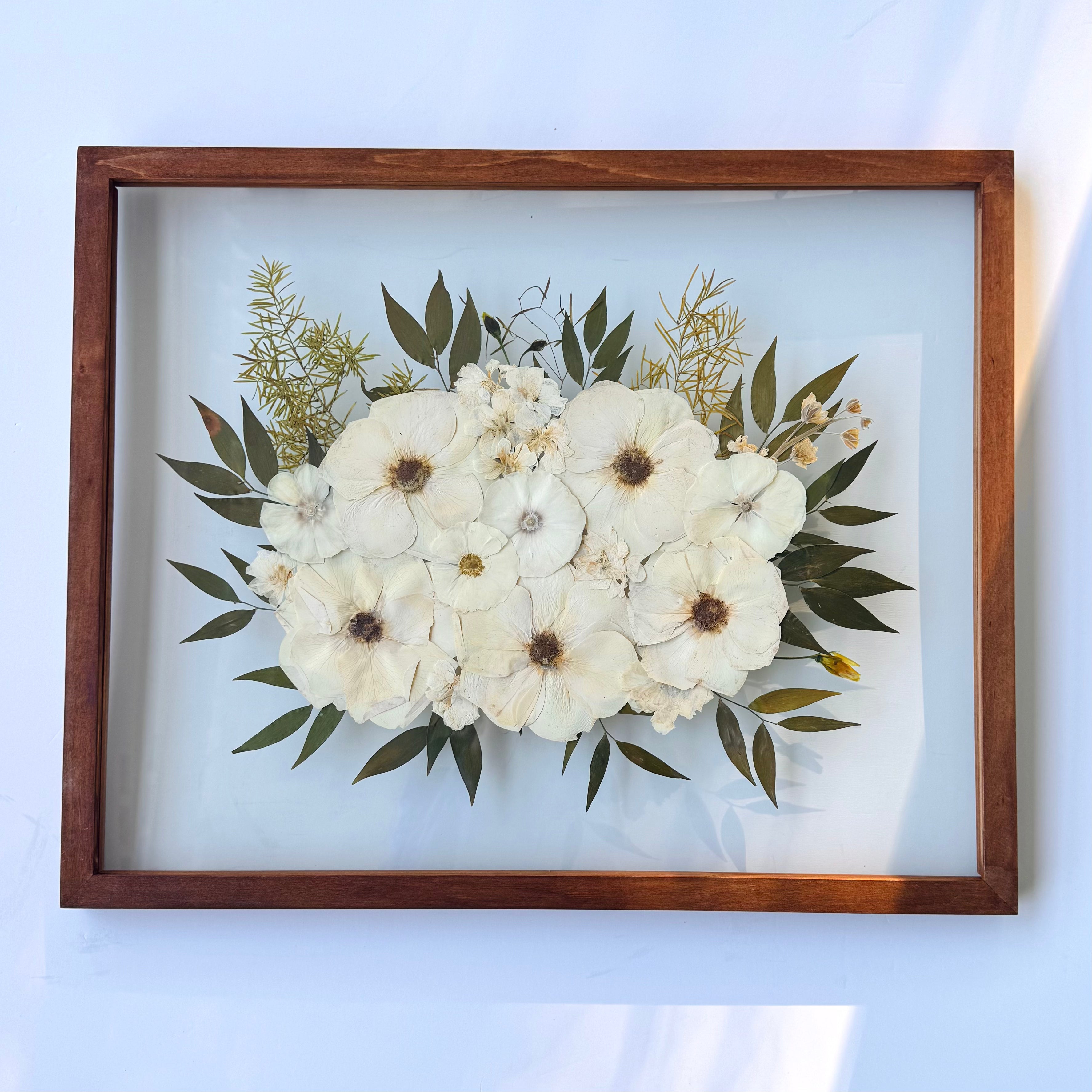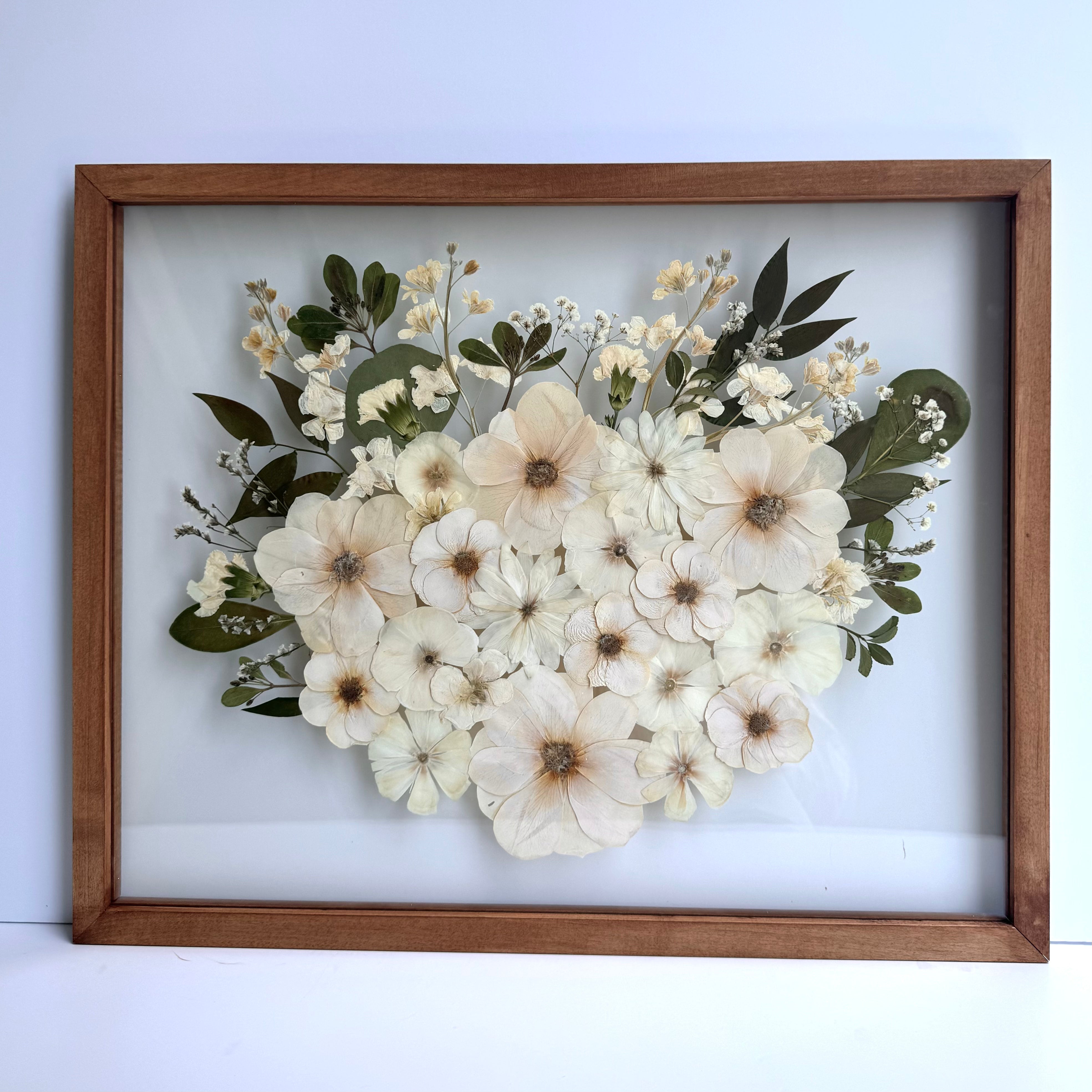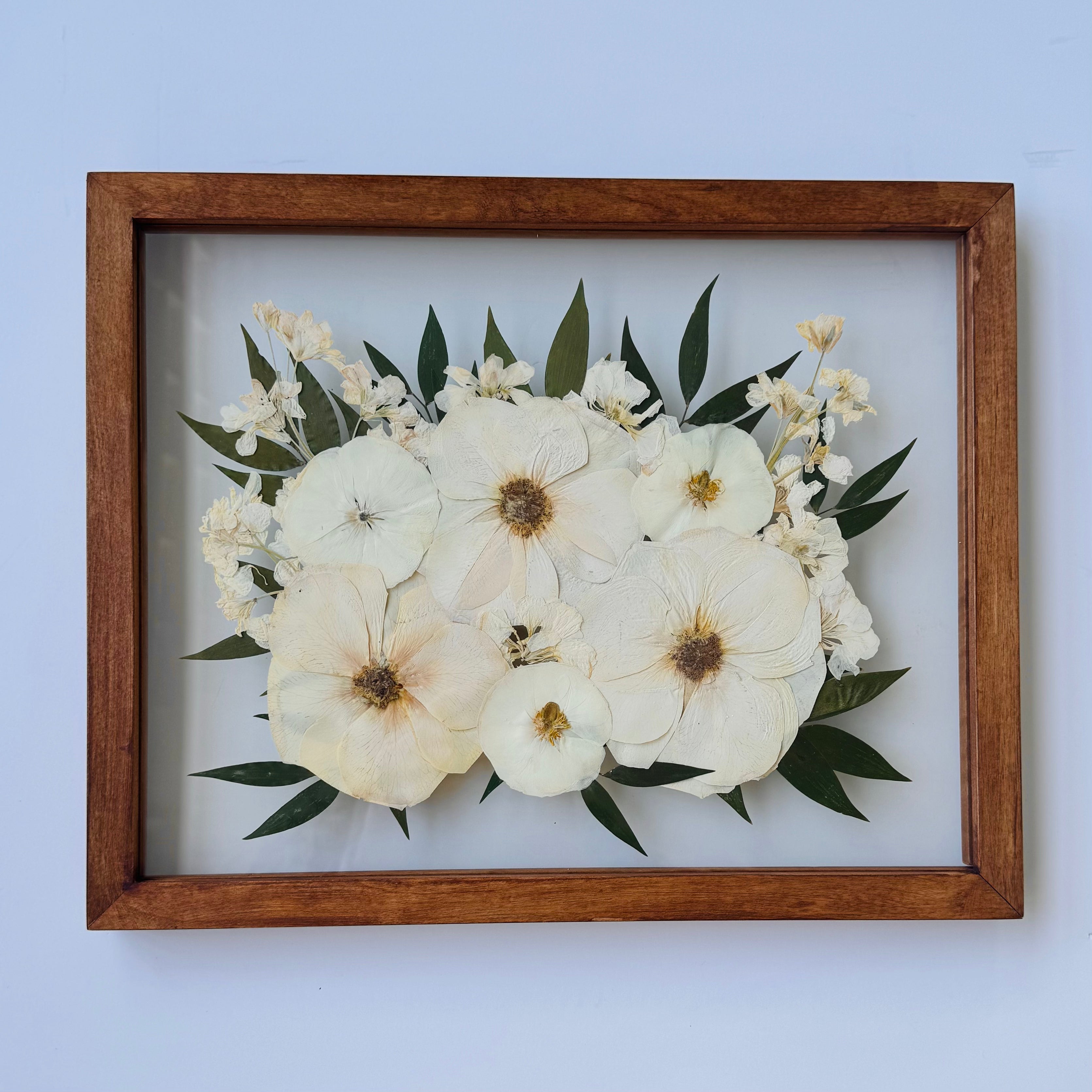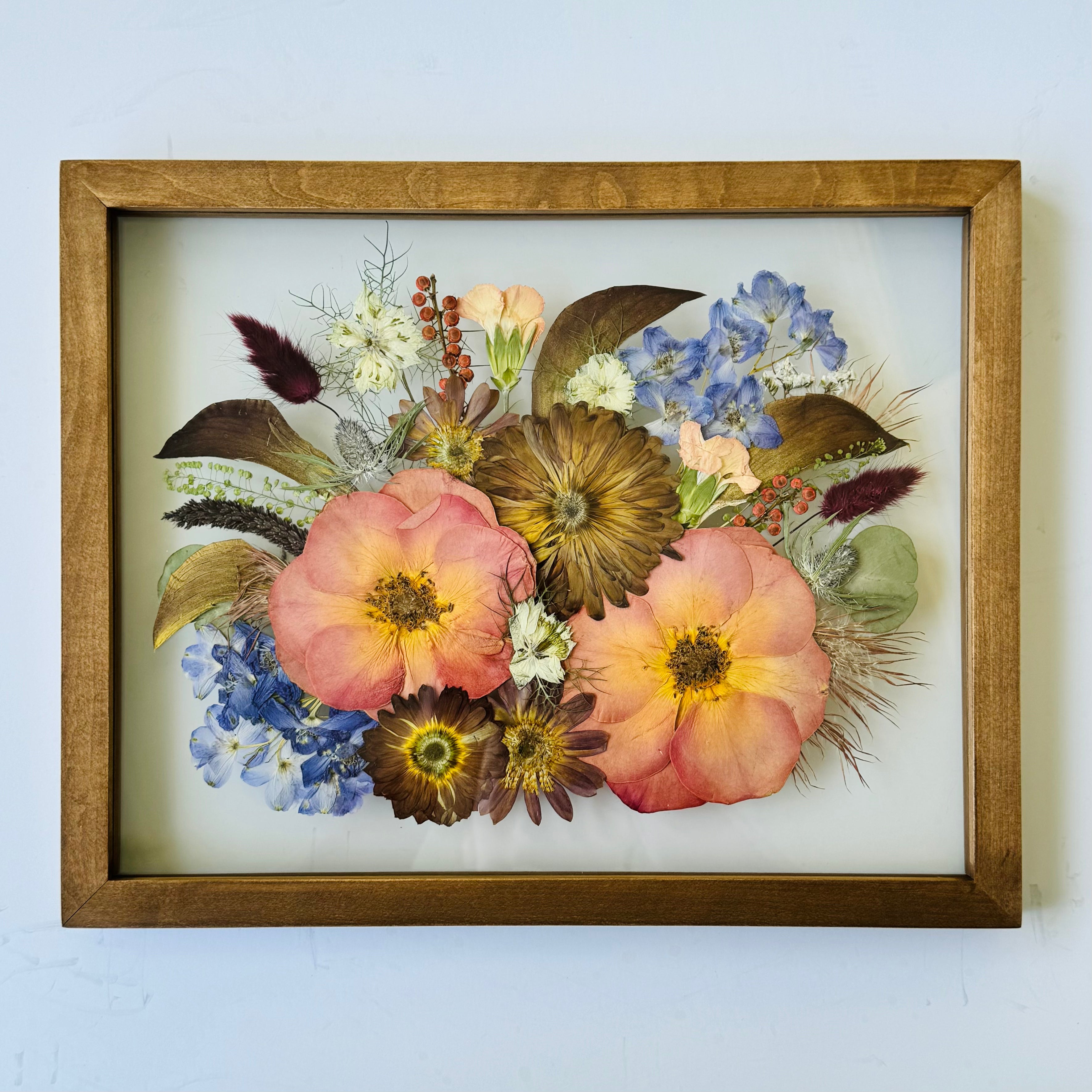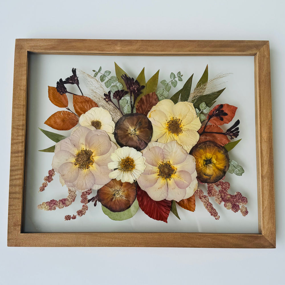 Welcome to our gallery! Here, you’ll find a collection of frames we have created for our clients, each handcrafted with love and care. From vibrant bouquets to monochromatic designs, Peachy Petals does it all. Every bouquet tells a different story, and we strive to make each frame as unique as the memory it holds.