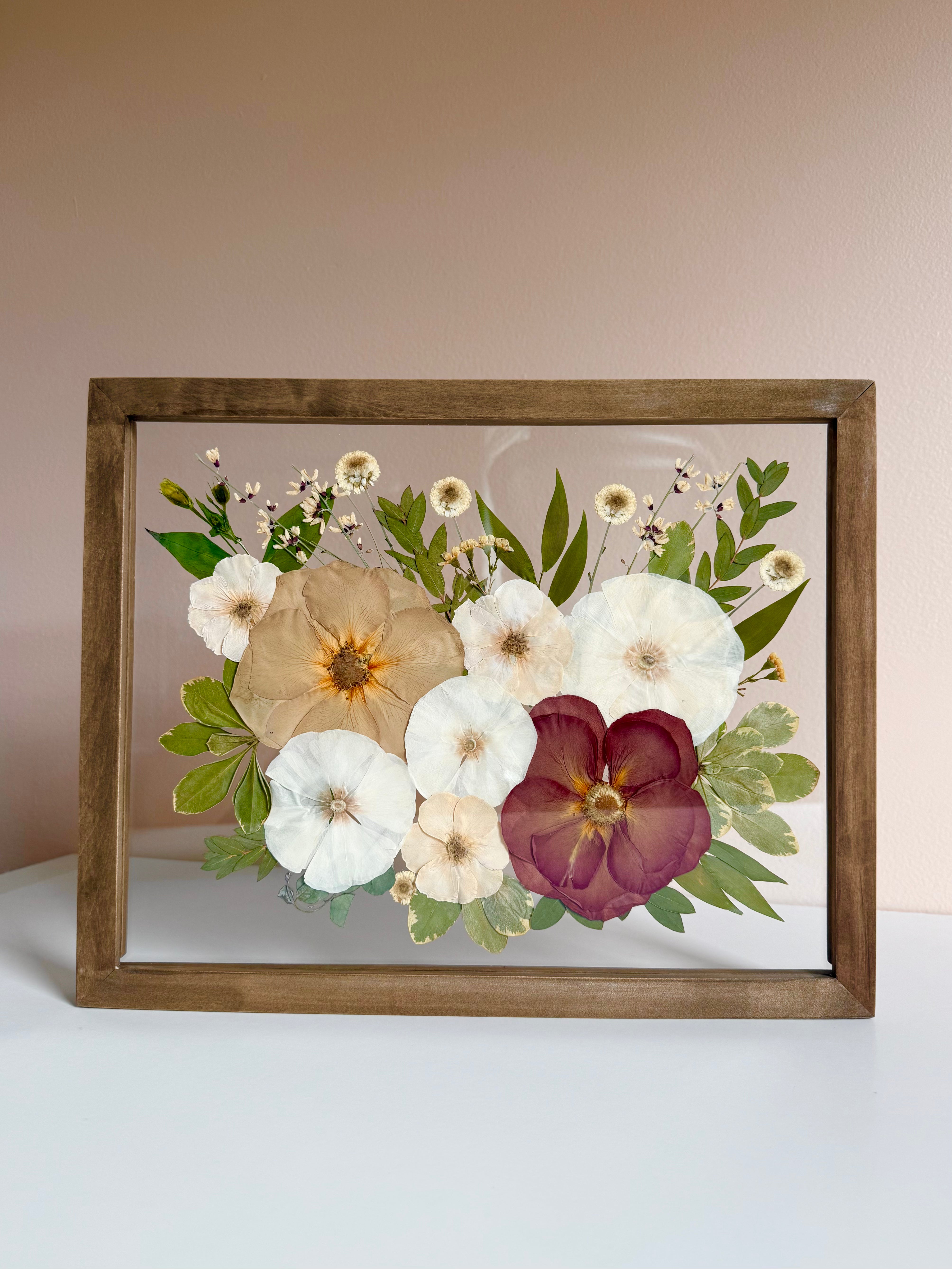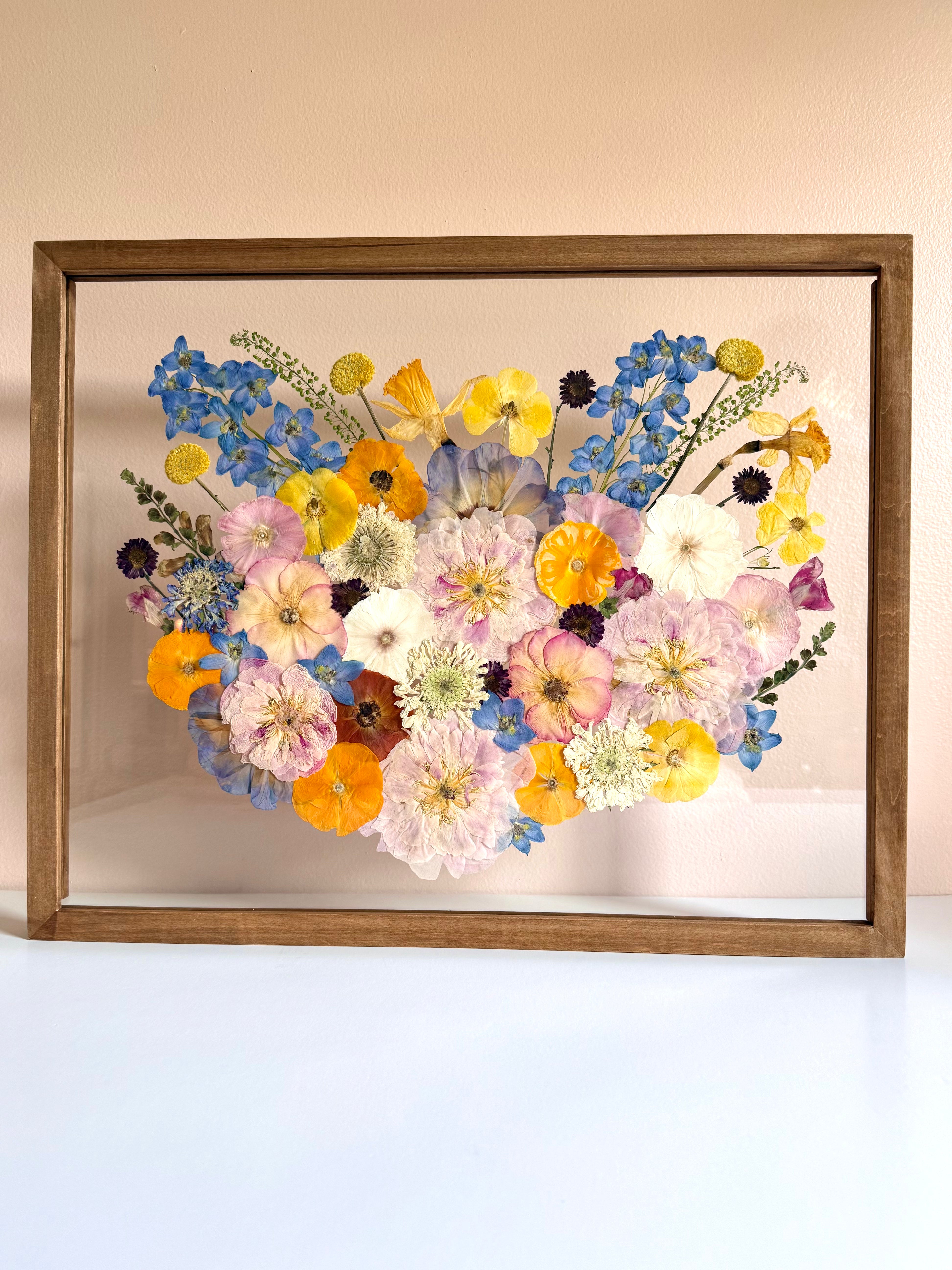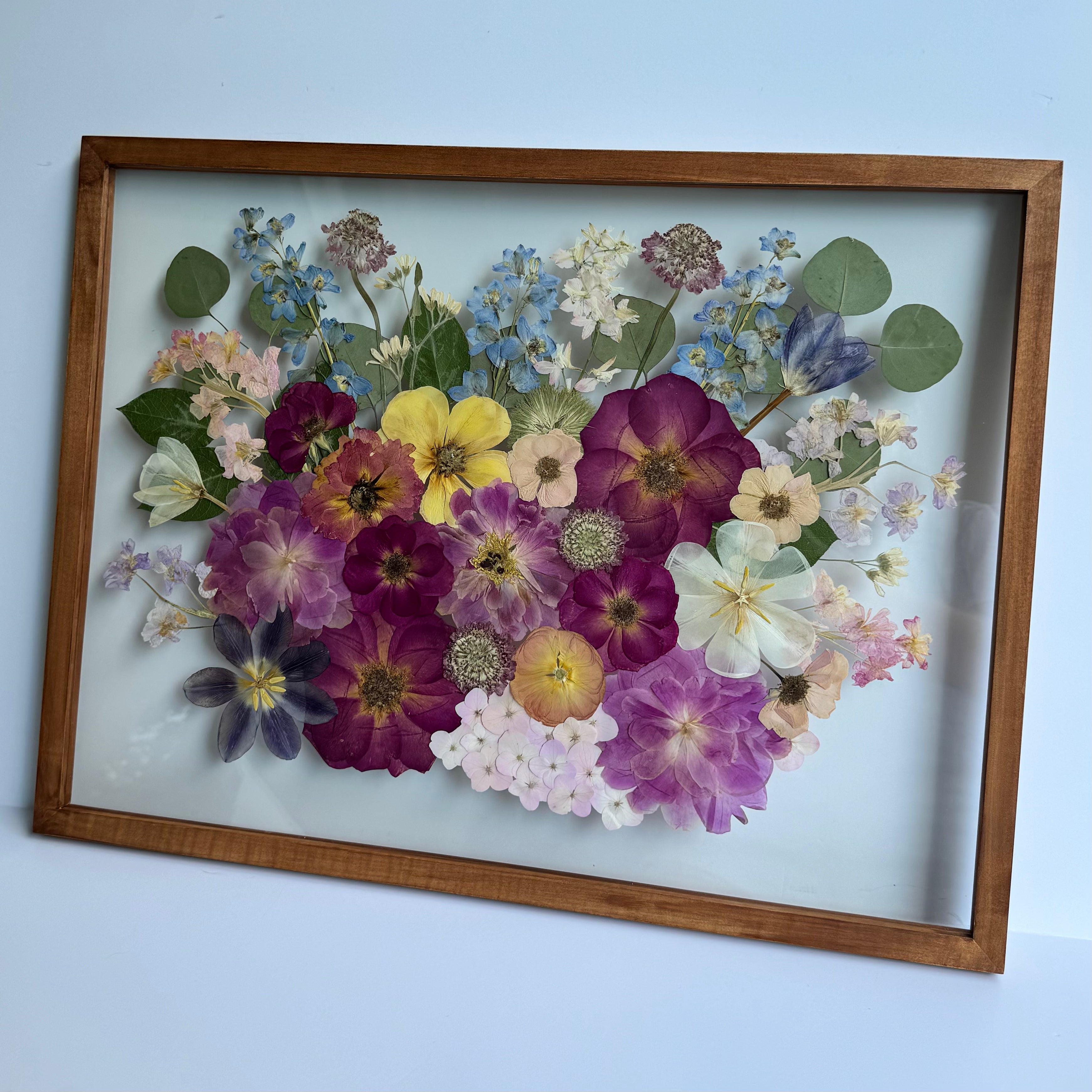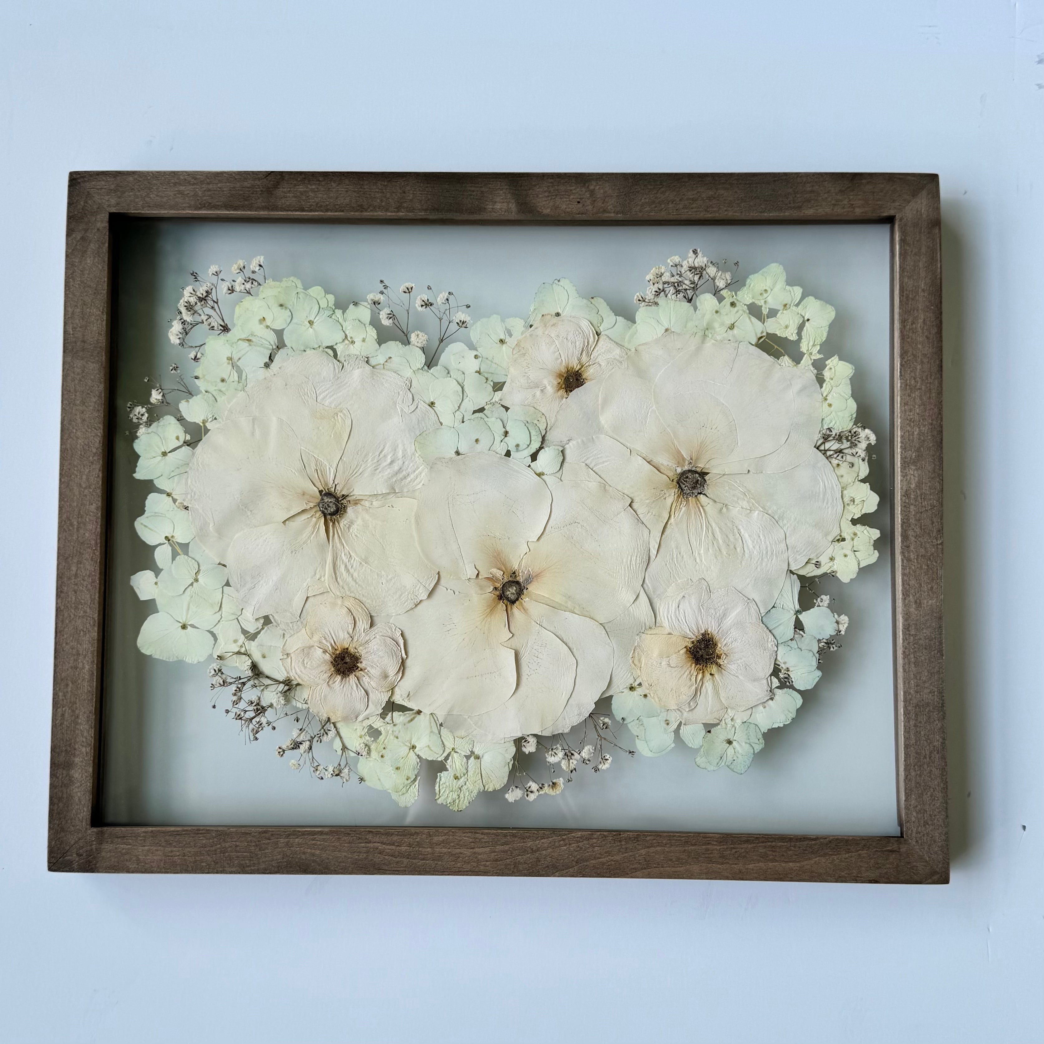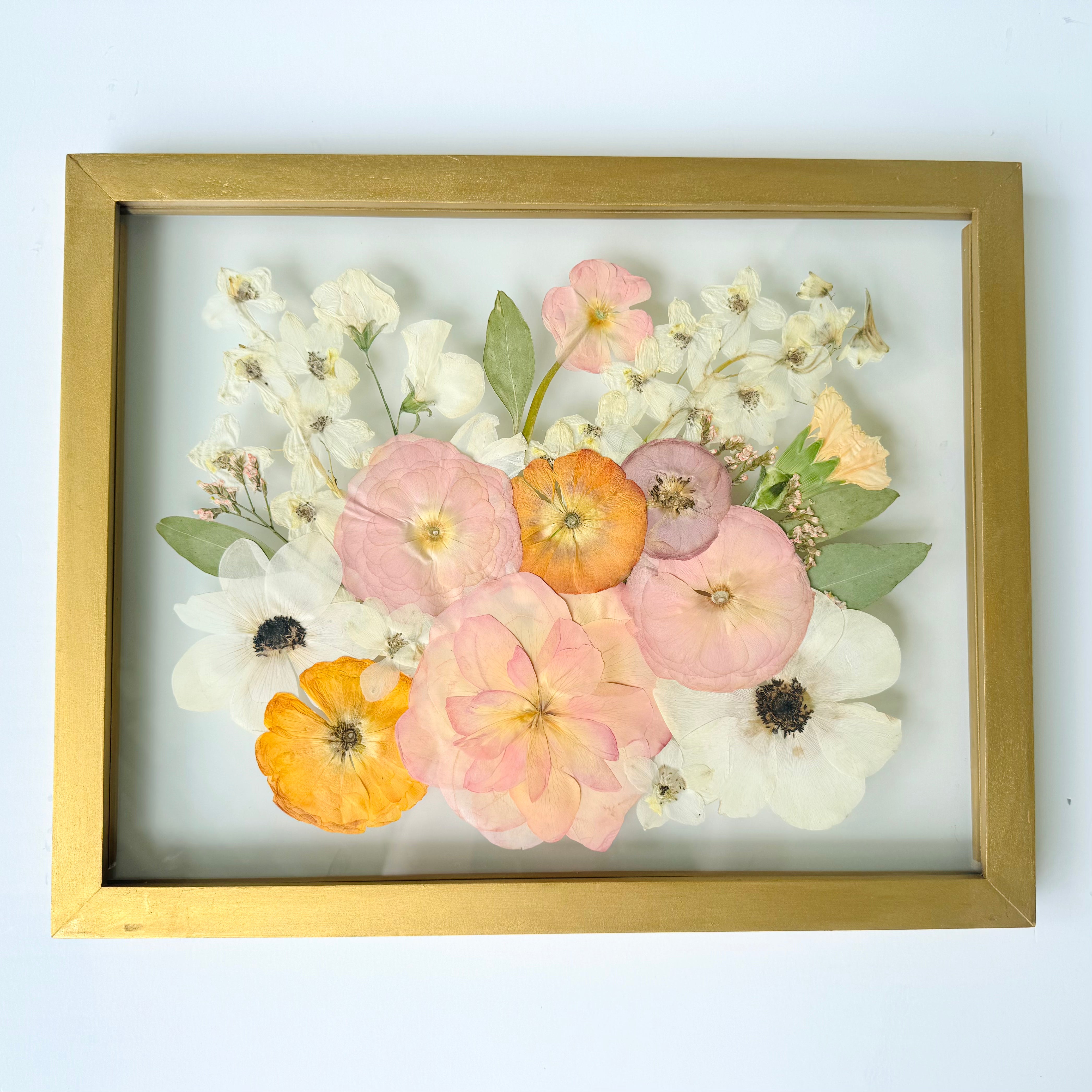 Welcome to our gallery! Here, you’ll find a collection of frames we have created for our clients, each handcrafted with love and care. From vibrant bouquets to monochromatic designs, Peachy Petals does it all. Every bouquet tells a different story, and we strive to make each frame as unique as the memory it holds.