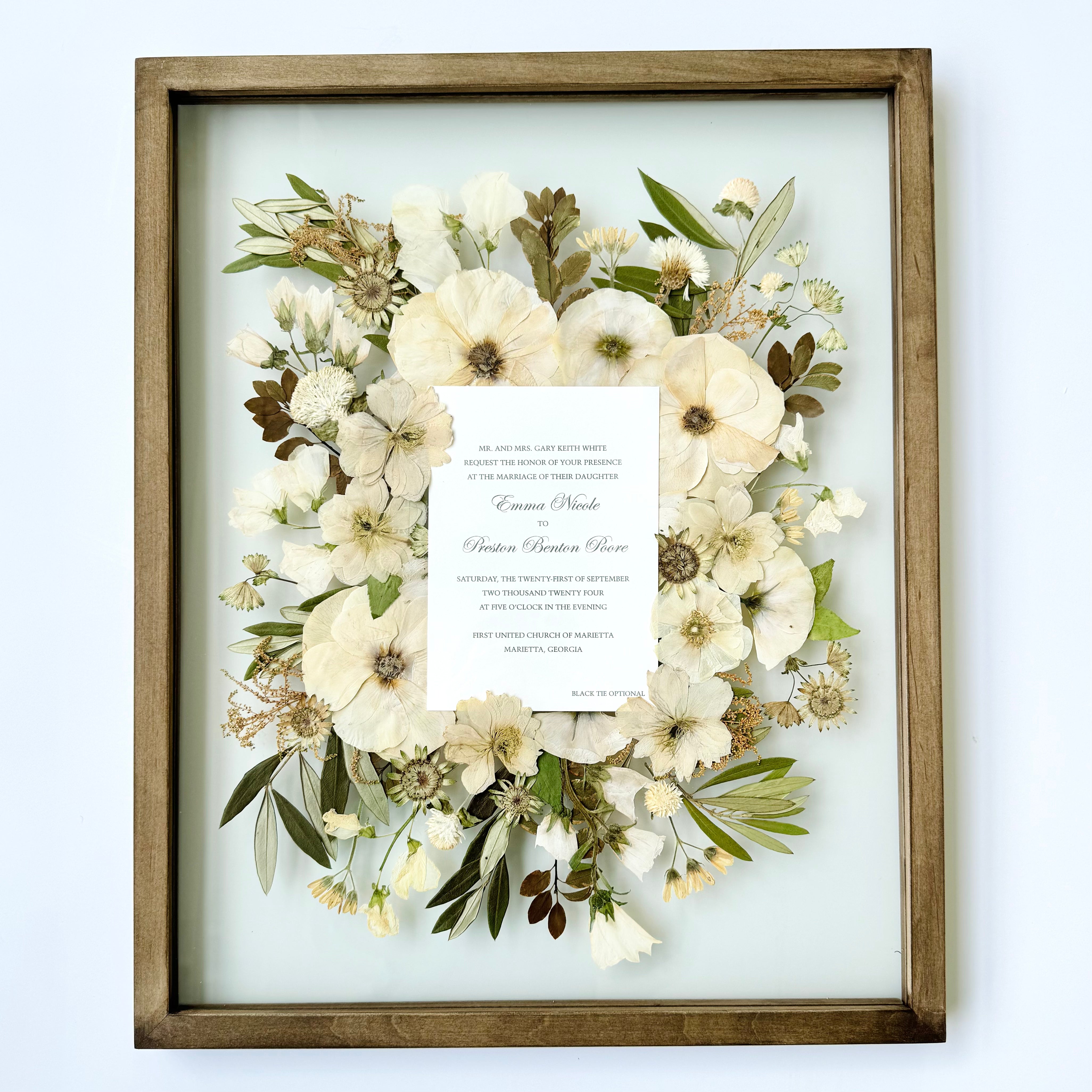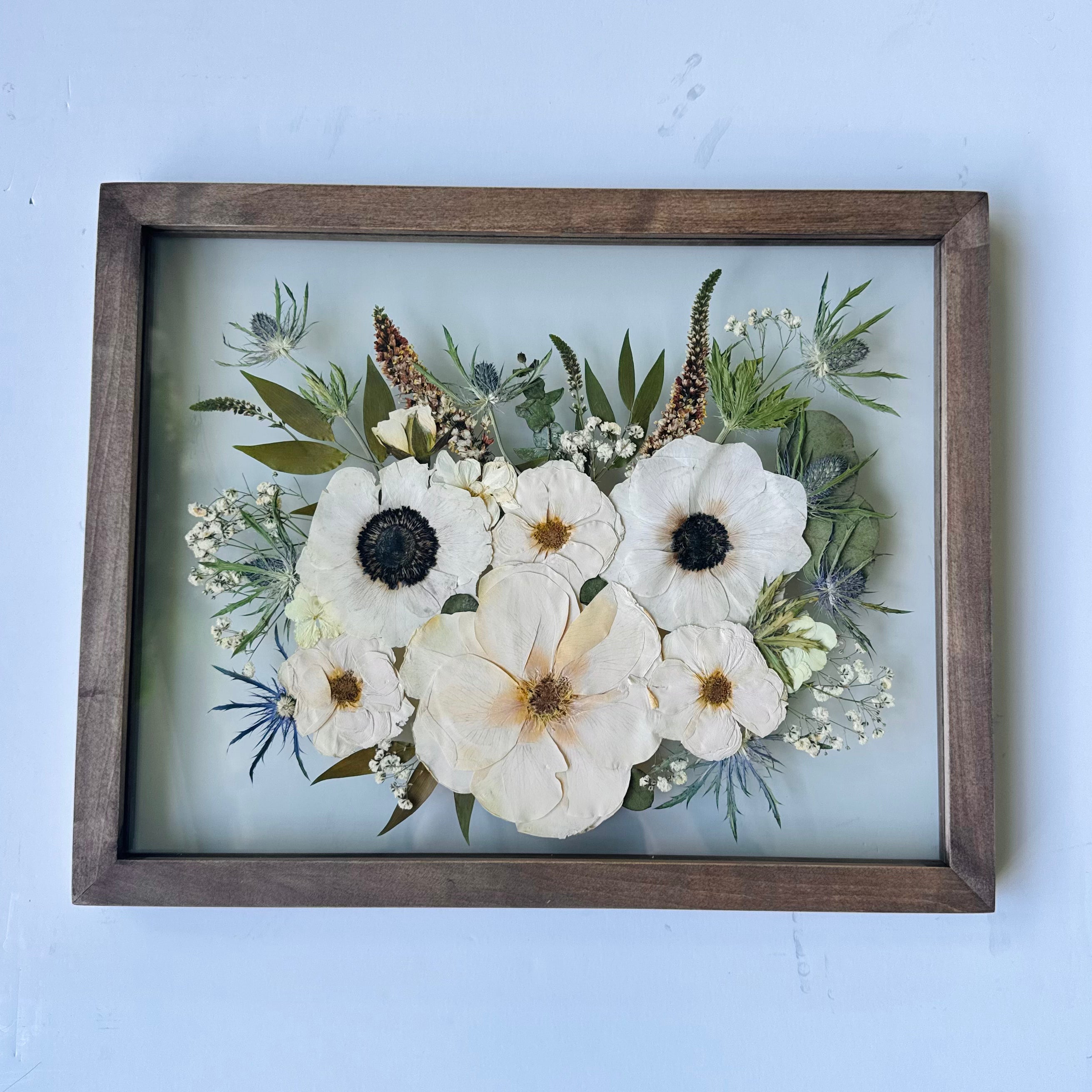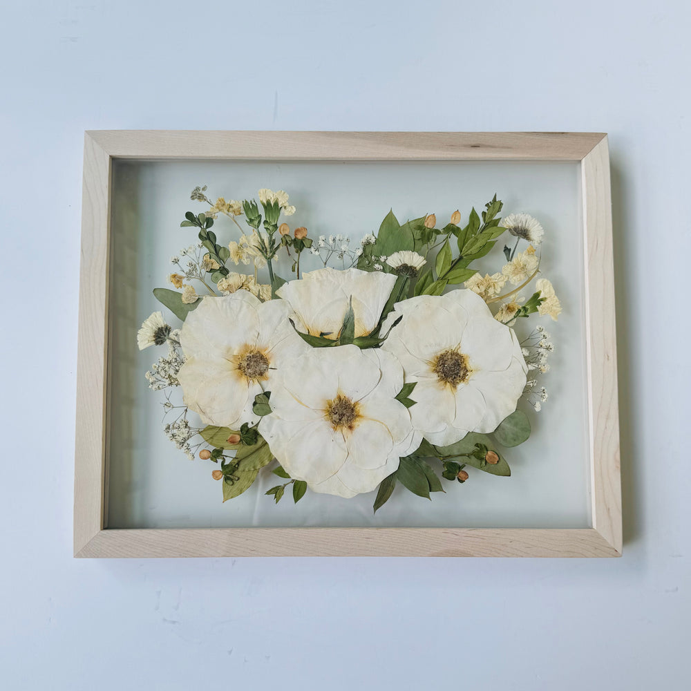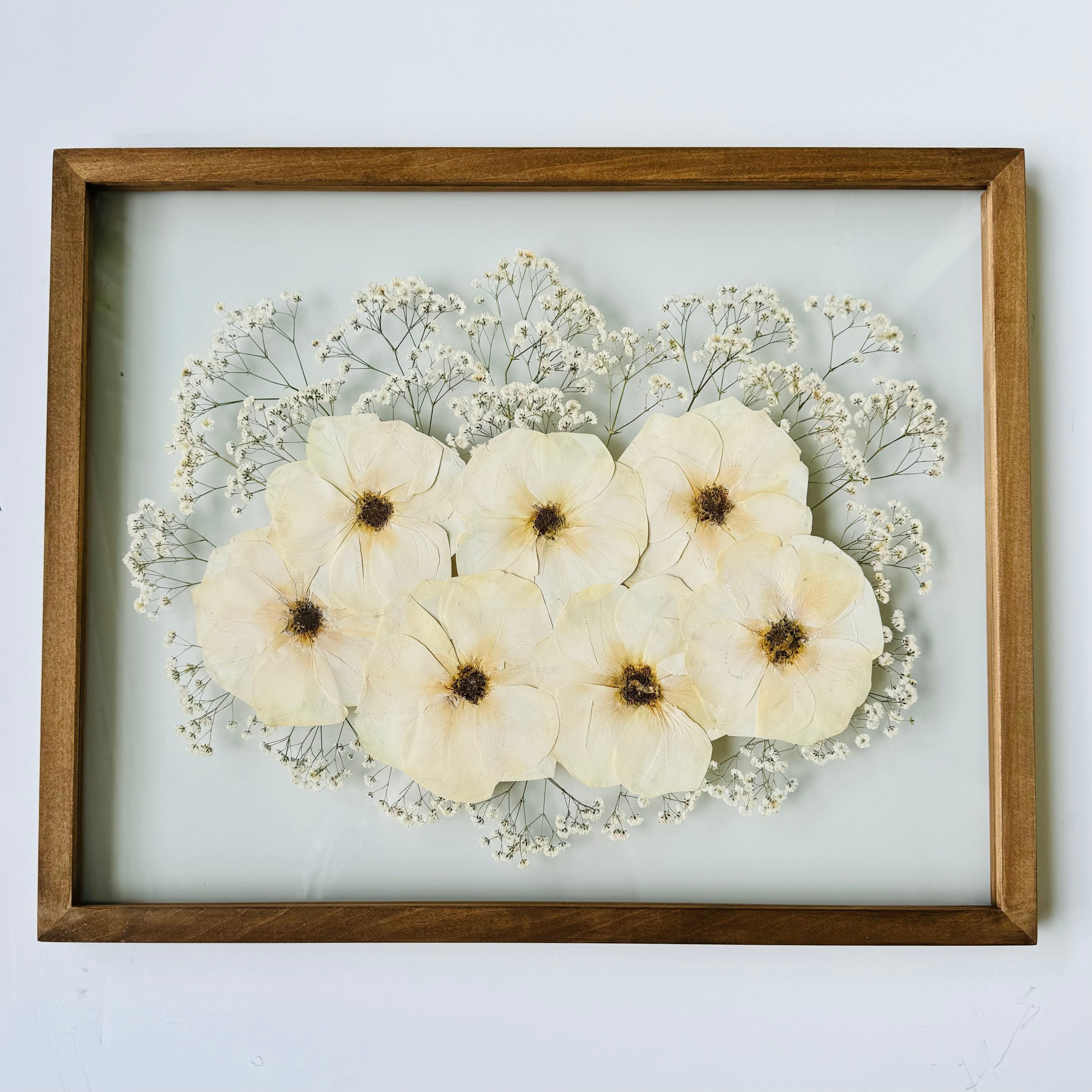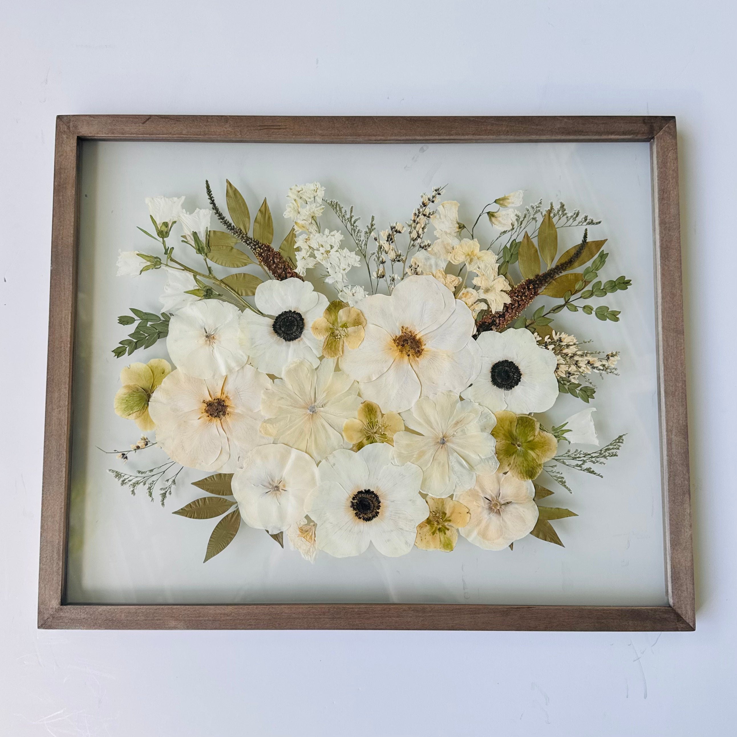 Welcome to our gallery! Here, you’ll find a collection of frames we have created for our clients, each handcrafted with love and care. From vibrant bouquets to monochromatic designs, Peachy Petals does it all. Every bouquet tells a different story, and we strive to make each frame as unique as the memory it holds.