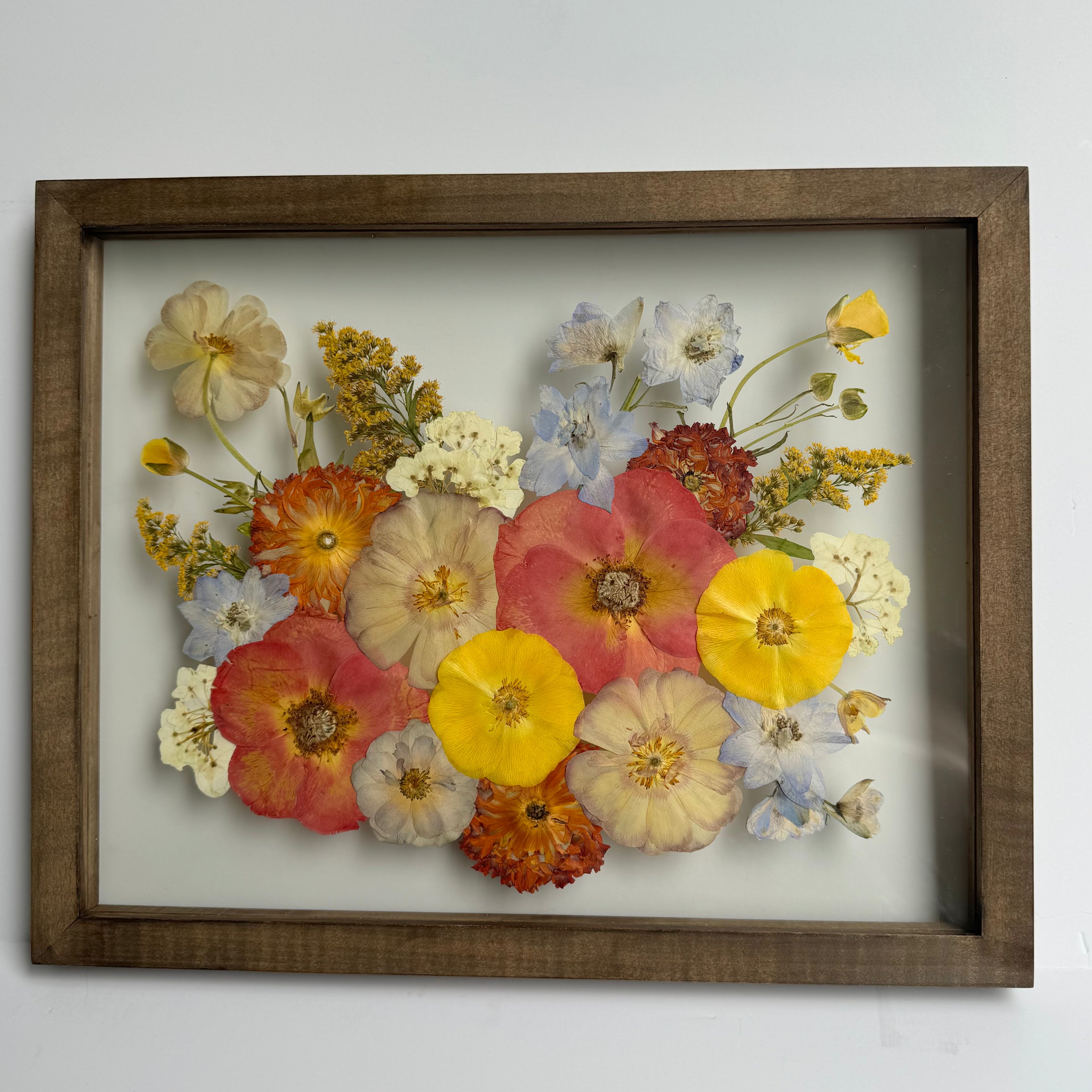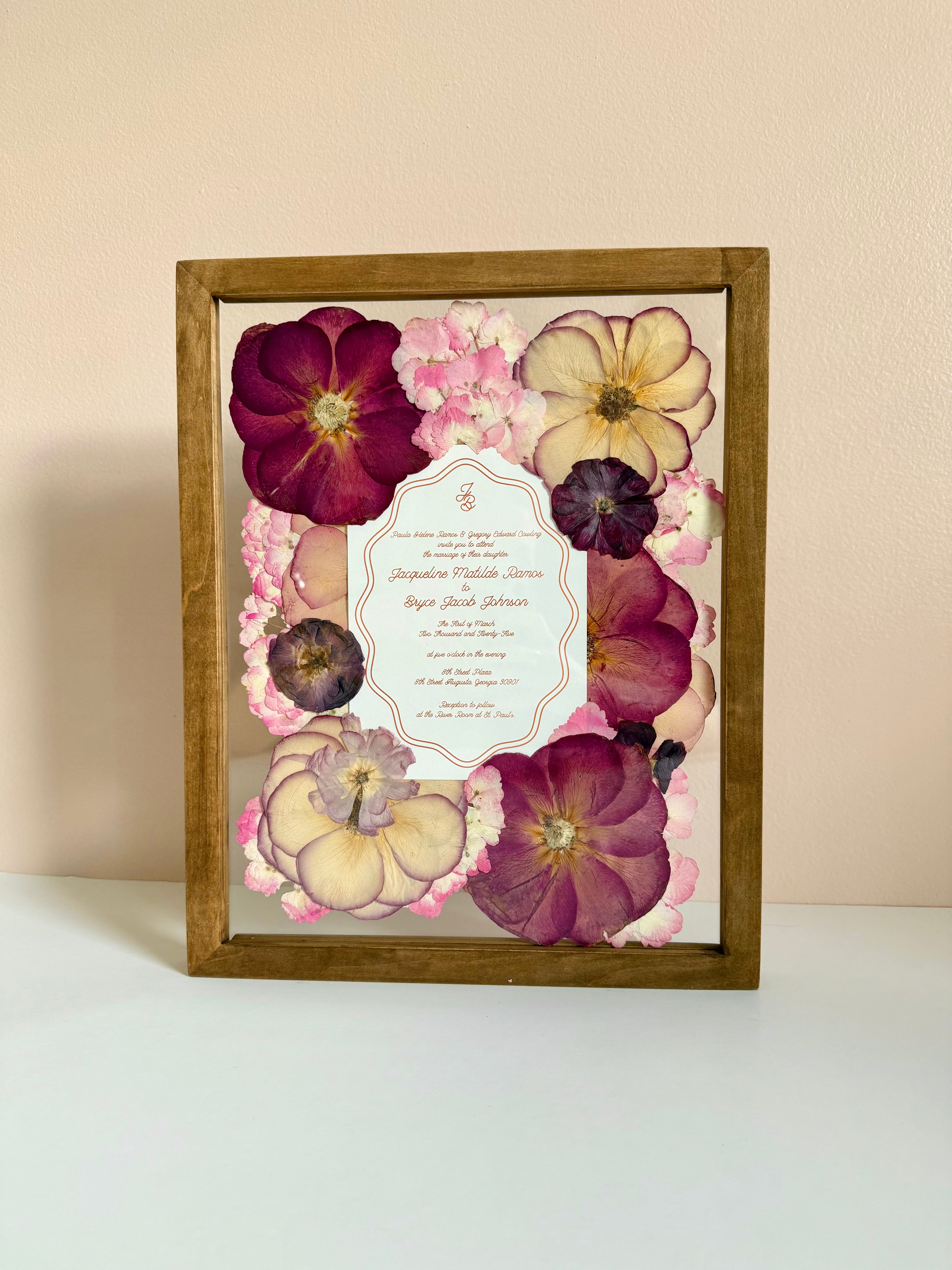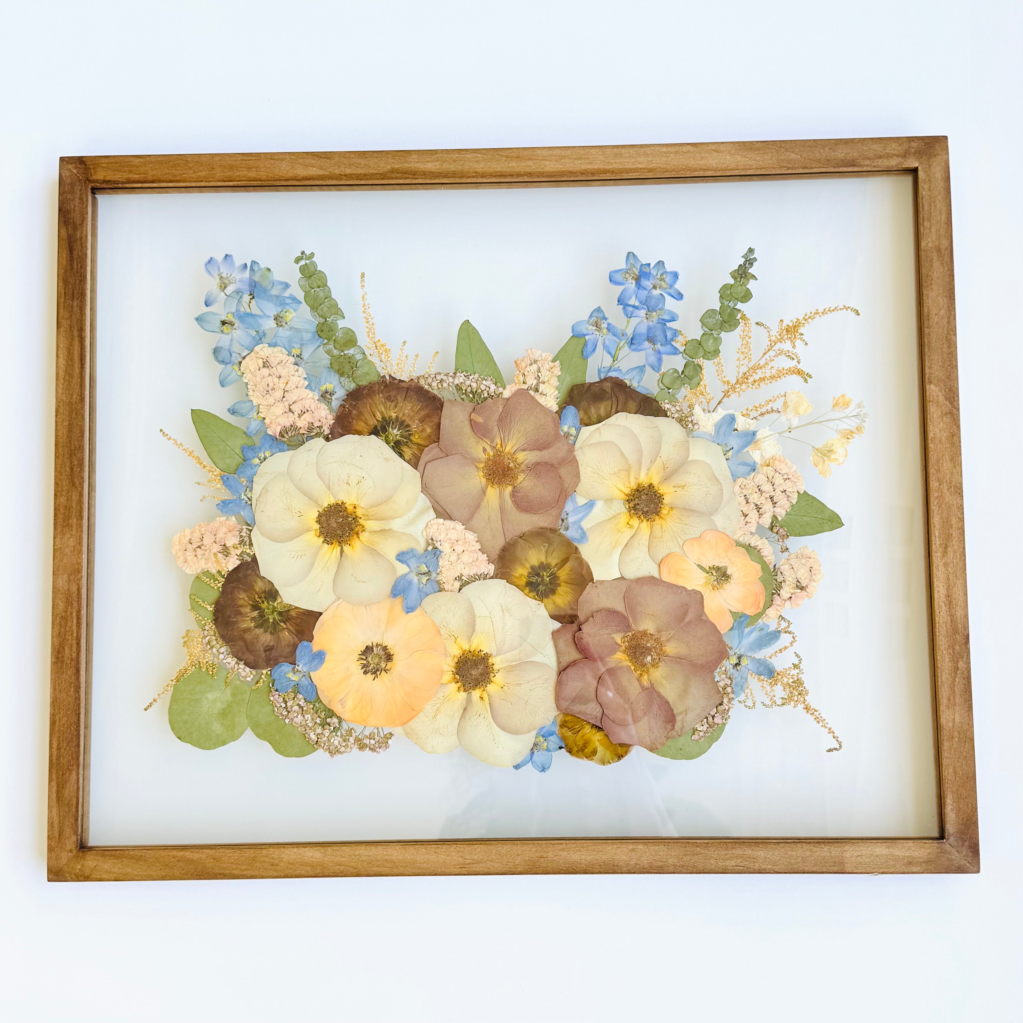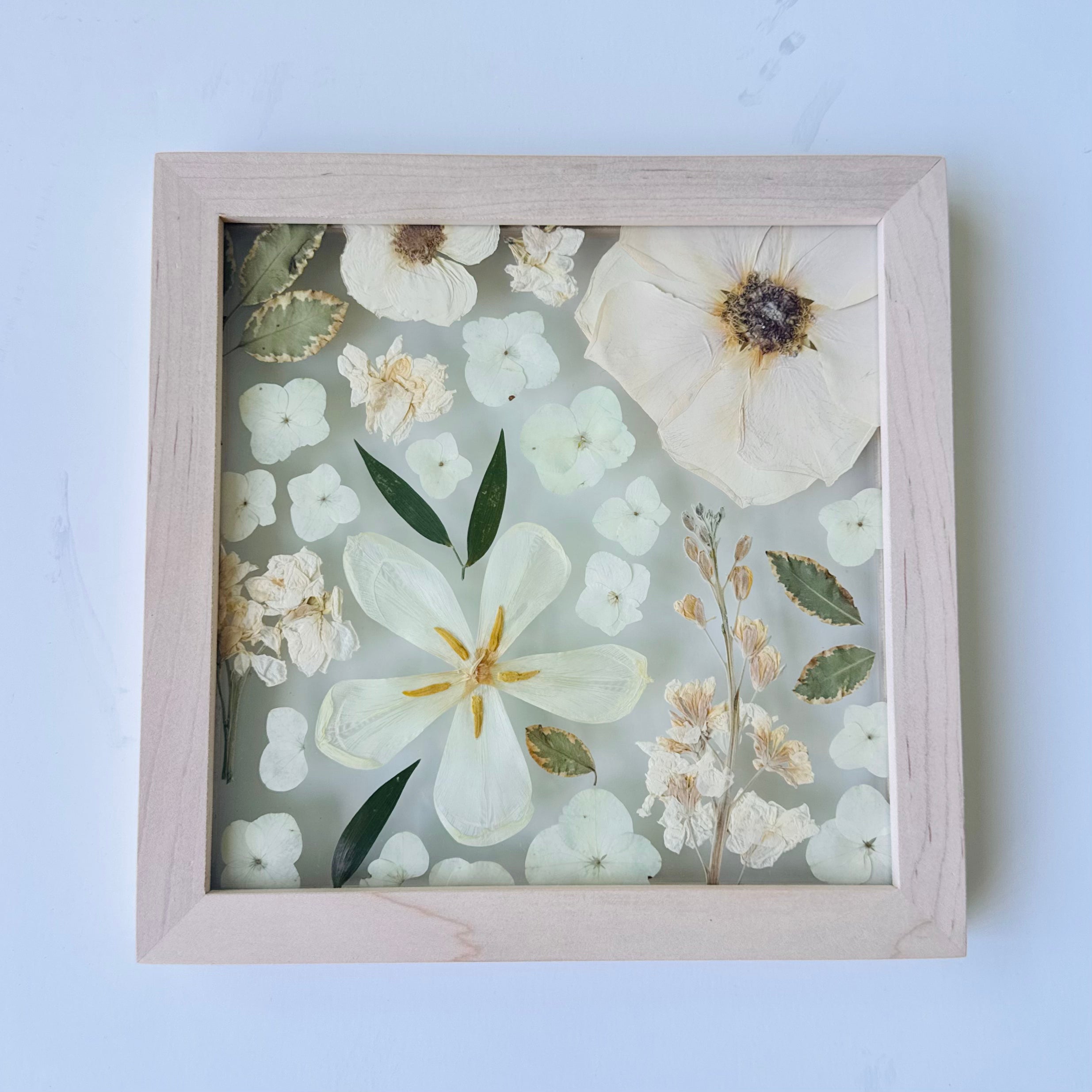 Welcome to our gallery! Here, you’ll find a collection of frames we have created for our clients, each handcrafted with love and care. From vibrant bouquets to monochromatic designs, Peachy Petals does it all. Every bouquet tells a different story, and we strive to make each frame as unique as the memory it holds.
