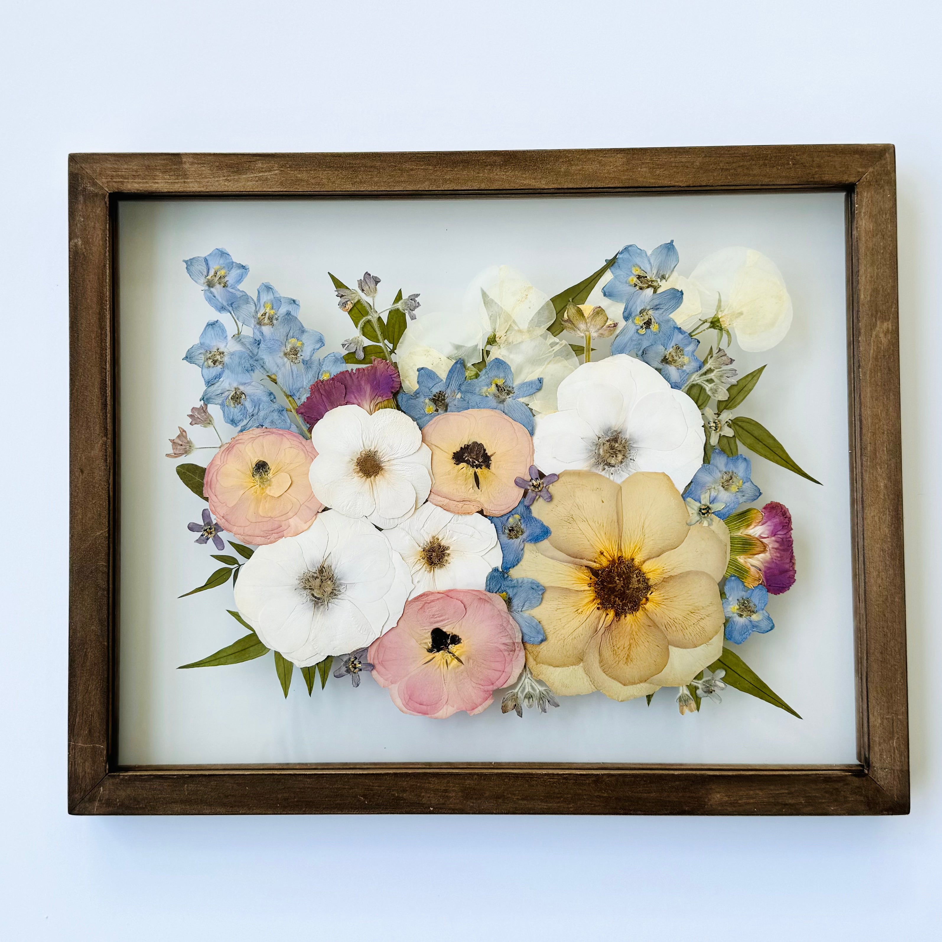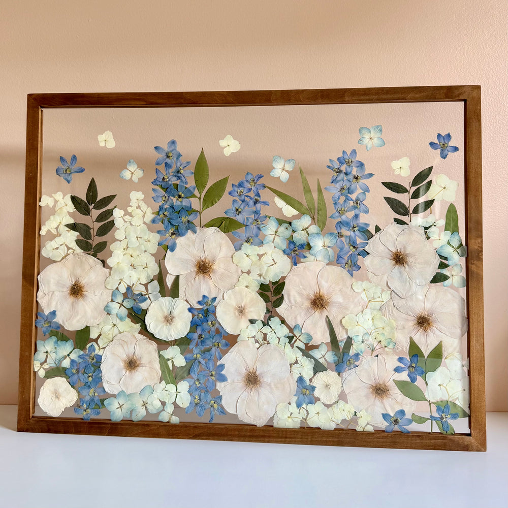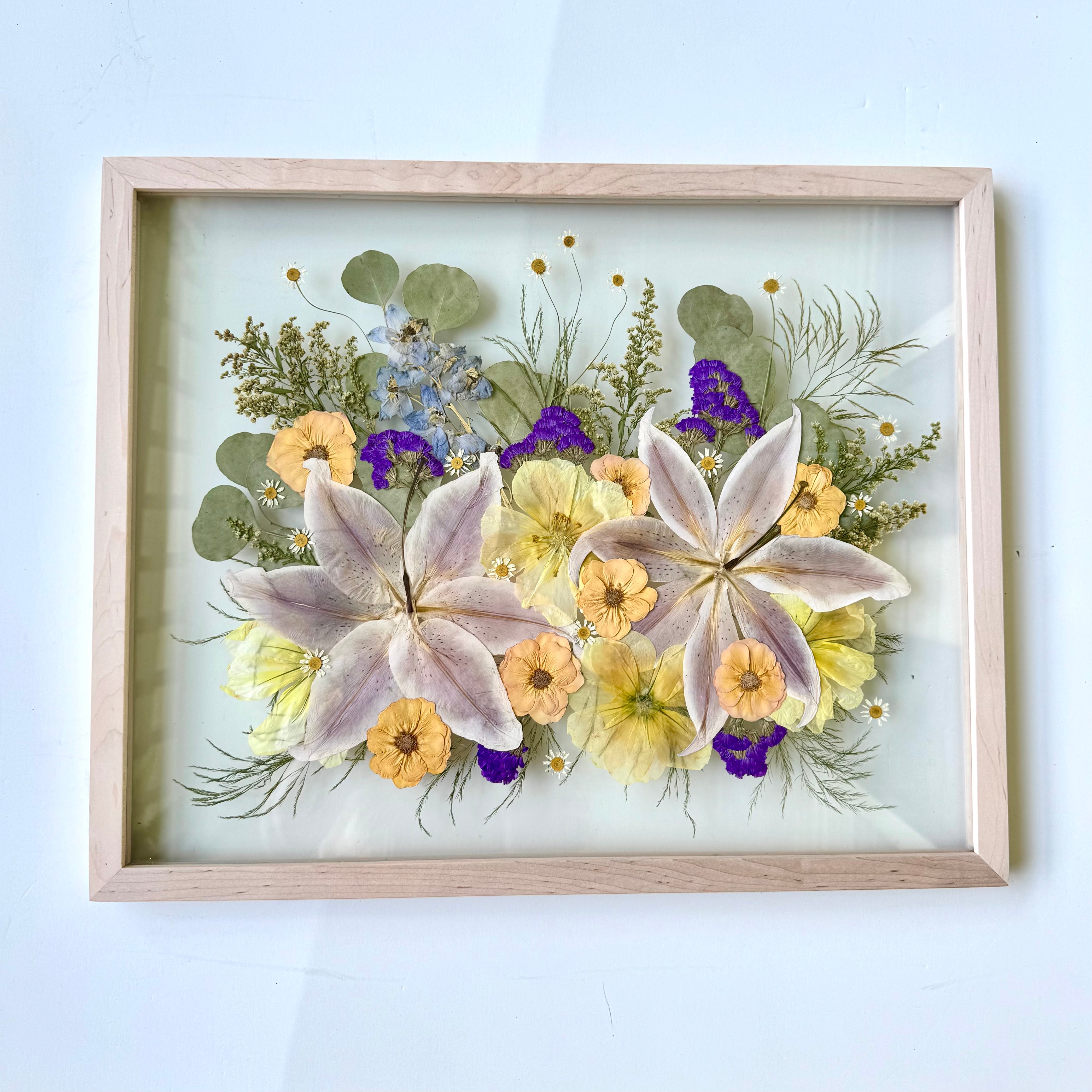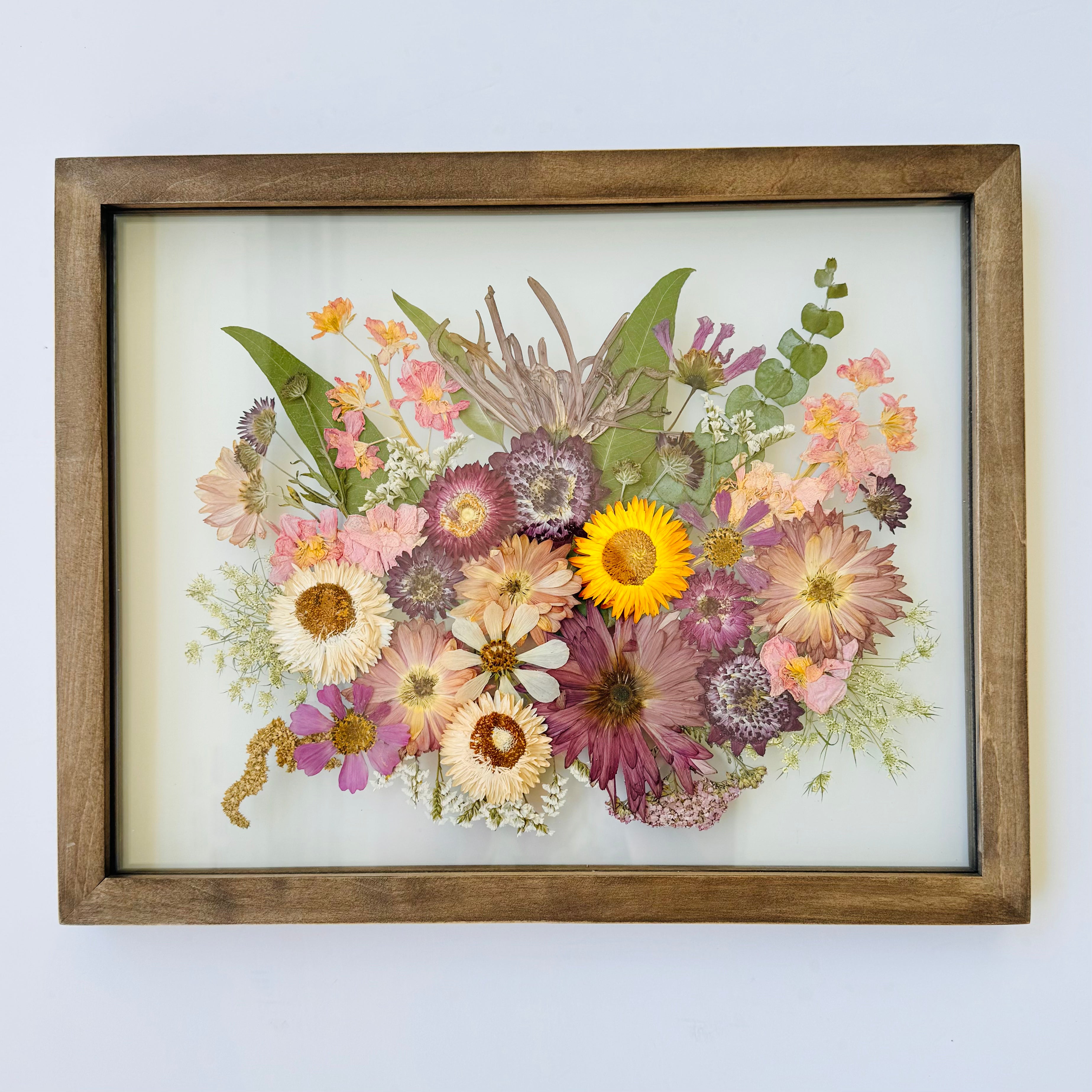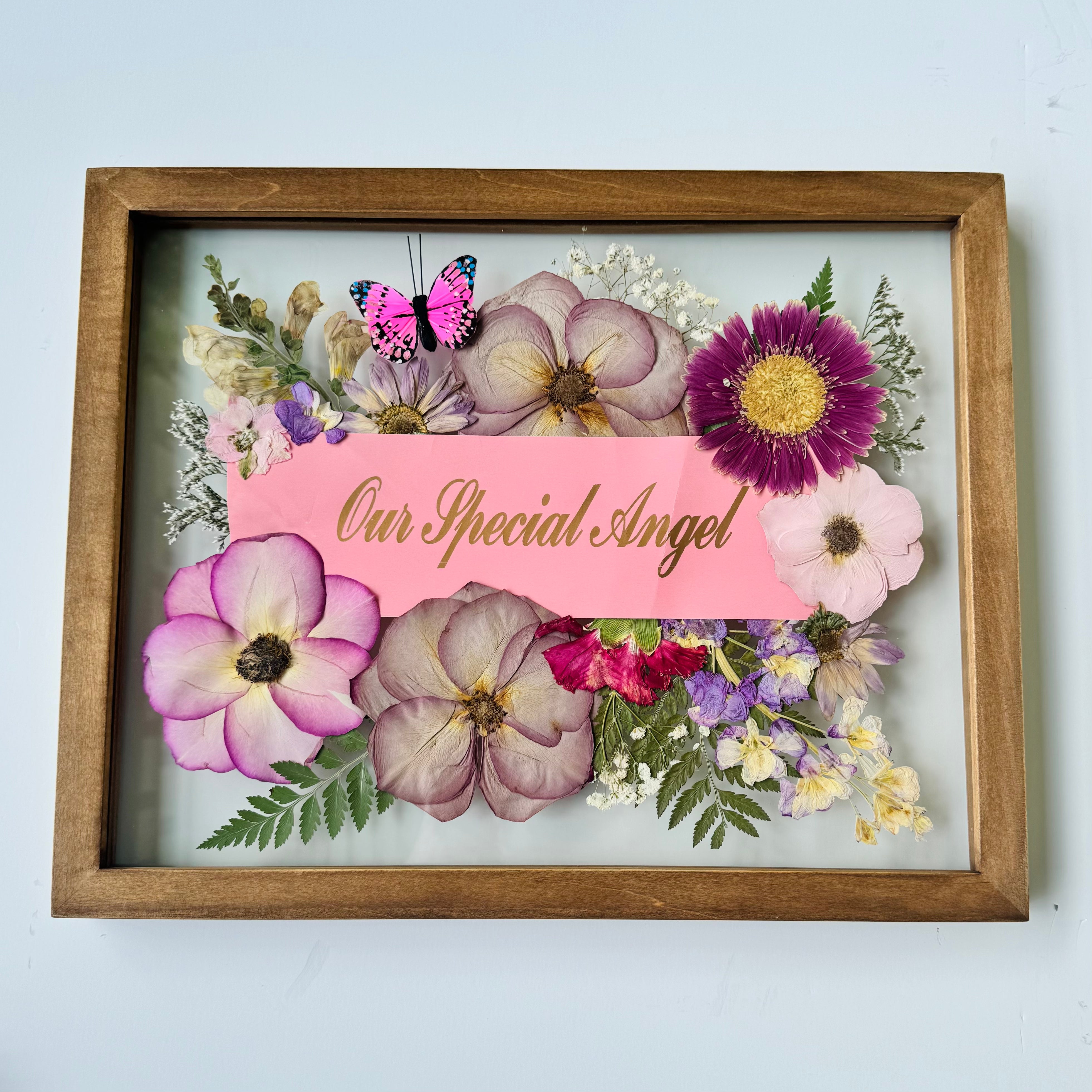 Welcome to our gallery! Here, you’ll find a collection of frames we have created for our clients, each handcrafted with love and care. From vibrant bouquets to monochromatic designs, Peachy Petals does it all. Every bouquet tells a different story, and we strive to make each frame as unique as the memory it holds.