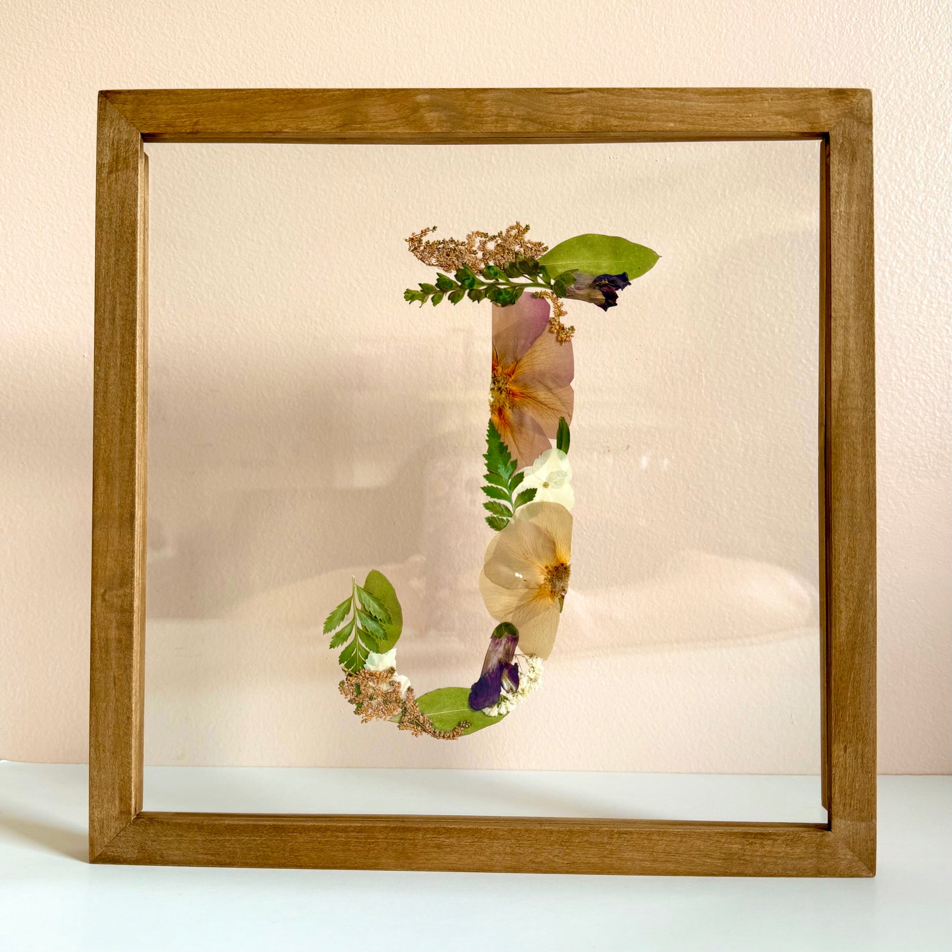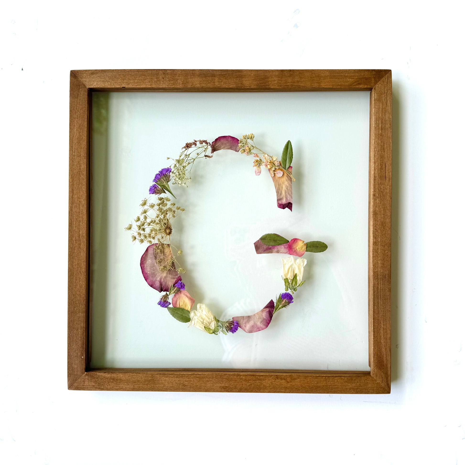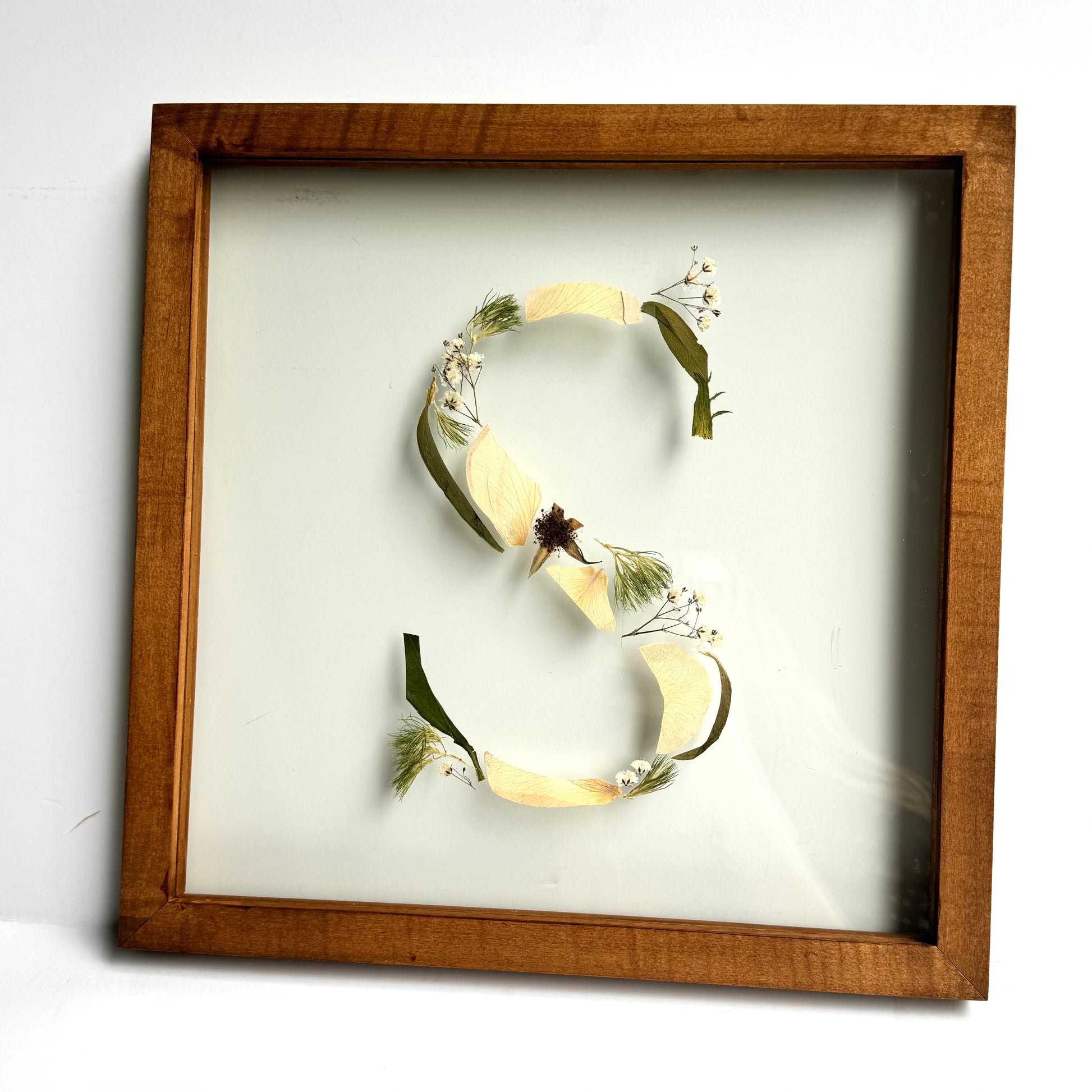 Our 12x12 Monogram frame an elegant way to preserve your wedding flowers with a personal touch! This custom frame features your initial created out of pressed florals from your event. Each frame is custom made from beautiful maple wood and features 99% UV protectant glass to help prevent fading. Not just a keepsake, but a piece of art, this frame is perfect for displaying your cherished memories in a unique and meaningful way.