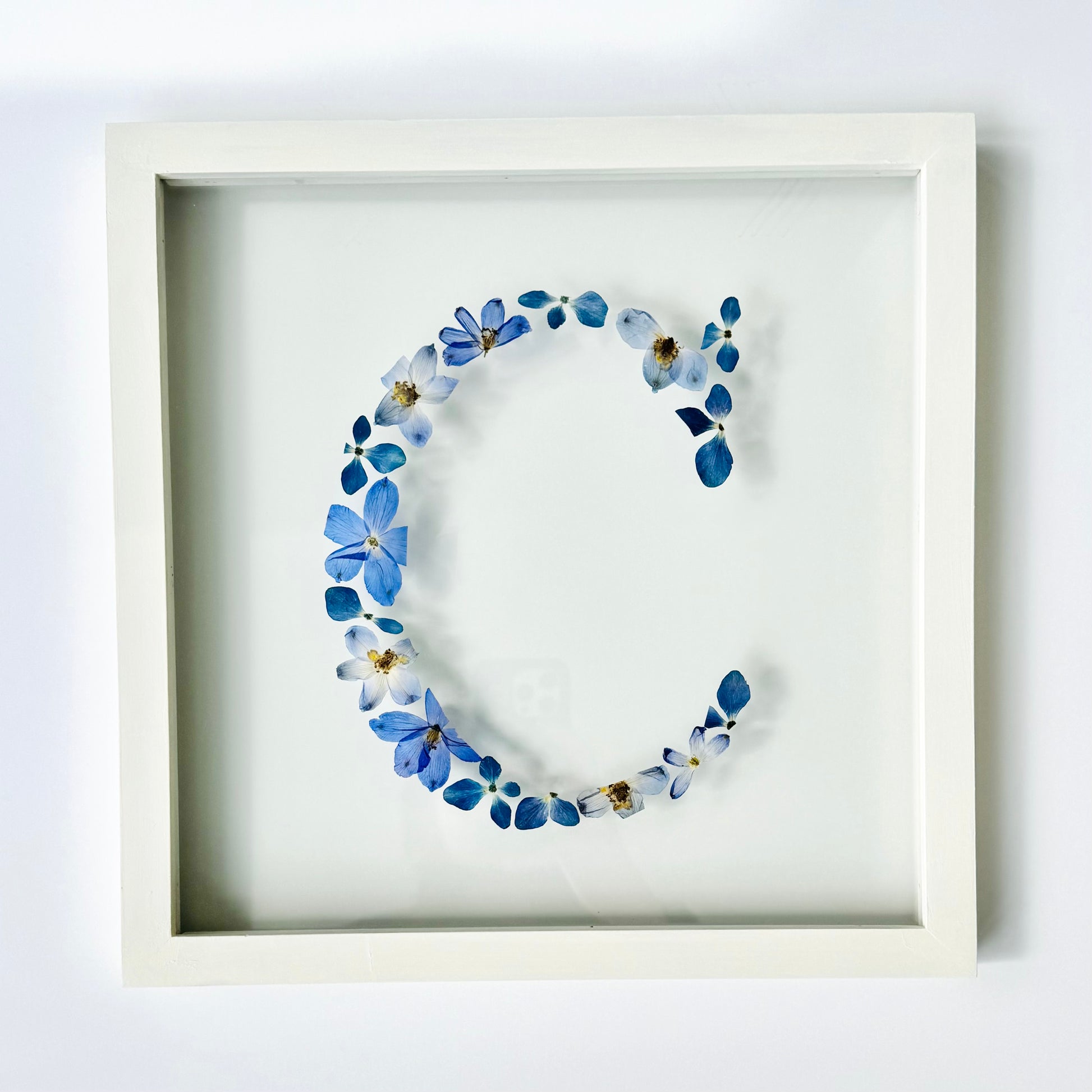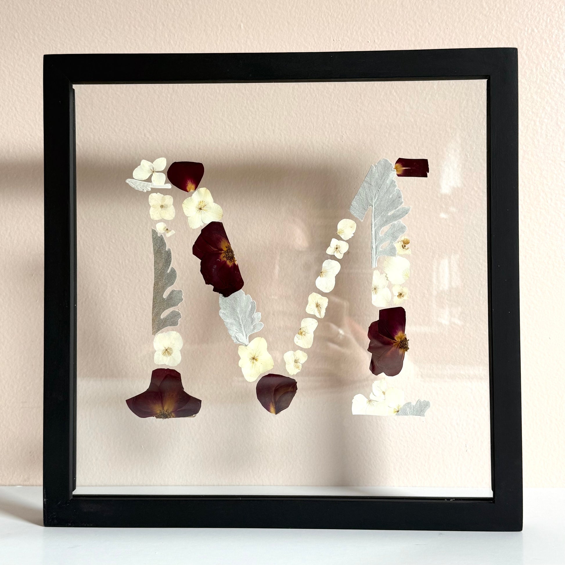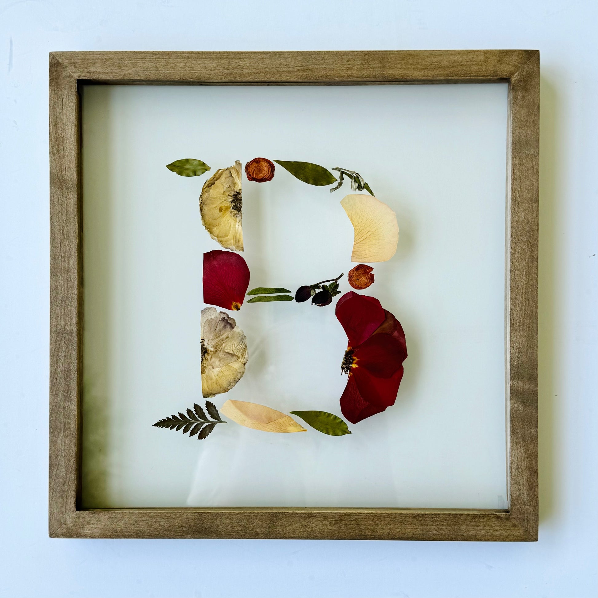 Our 12x12 Monogram frame an elegant way to preserve your wedding flowers with a personal touch! This custom frame features your initial created out of pressed florals from your event. Each frame is custom made from beautiful maple wood and features 99% UV protectant glass to help prevent fading. Not just a keepsake, but a piece of art, this frame is perfect for displaying your cherished memories in a unique and meaningful way.
