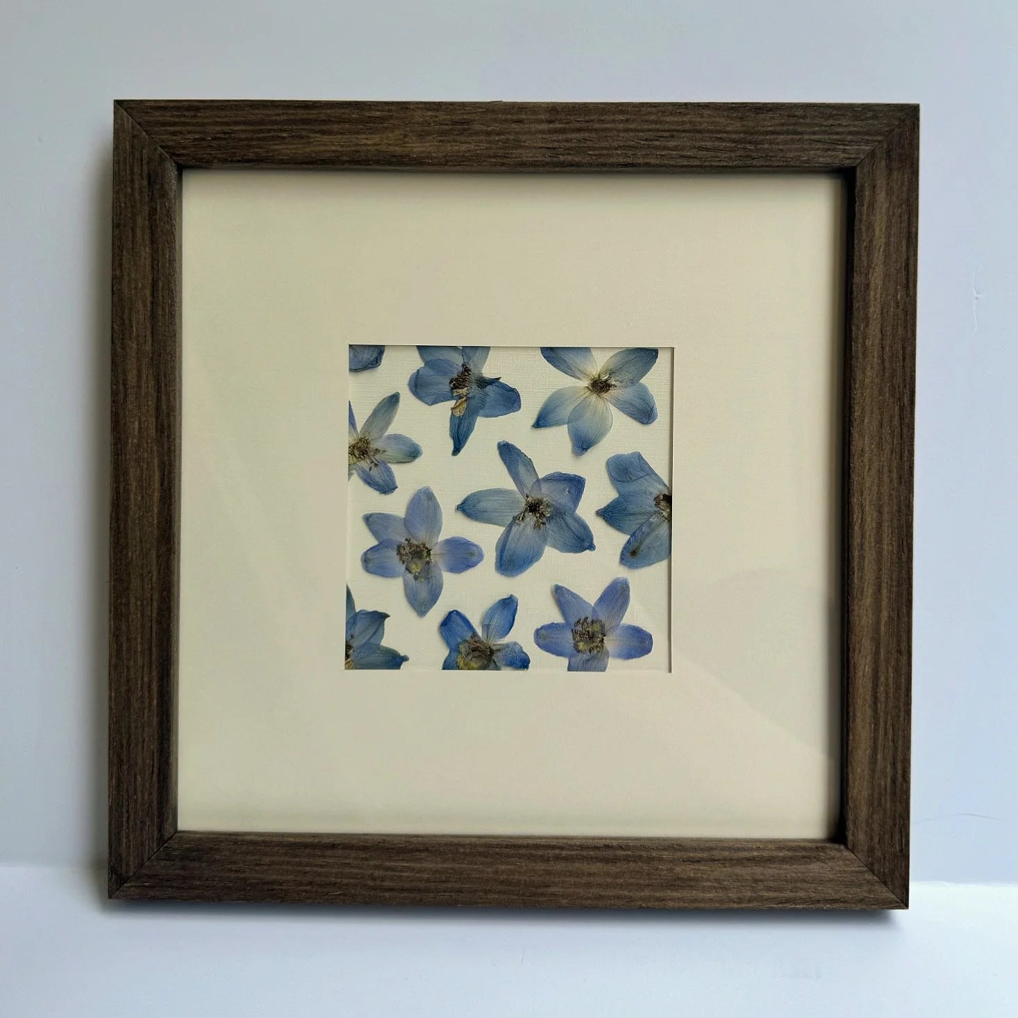 It's completely normal for flowers to change color during the preservation process - white blooms might turn creamy or yellow, and vibrant reds may mellow into purples. We do color-correct white flowers when necessary. This transformation is part of their natural aging process and gives each preserved piece a unique character. We embrace these changes as a testament to nature's unpredictable charm! You will receive a mock-up design for approval and be given the chance to make any adjustments before your frame is finalized.