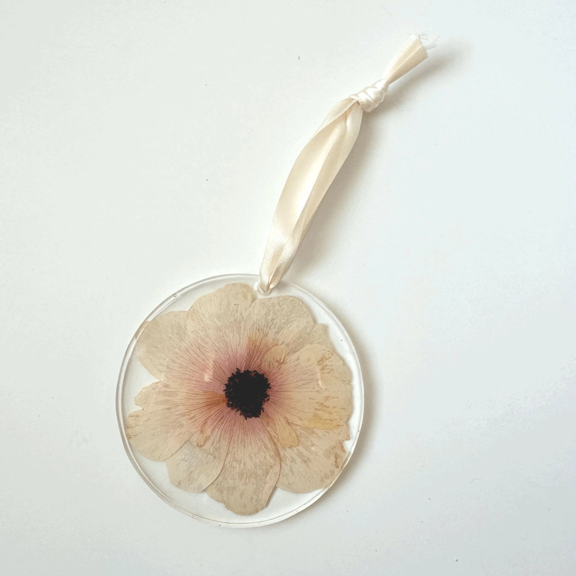 Our ornaments are resin ornaments filled with a whole flower. Hang it on your tree during the holidays or display it year-round as a lovely tribute to your special memories.
